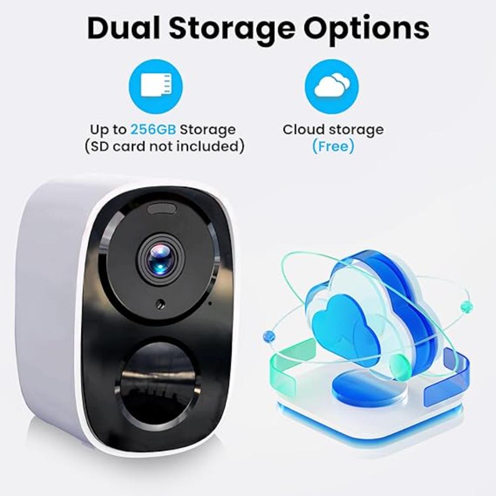 Cámaras de seguridad 2K actualizadas 2025 inalámbricas para exteriores, almacenamiento en la nube gratuito y soporte de tarjeta SD local, duración de la batería de 1 a 6 meses, impermeable.