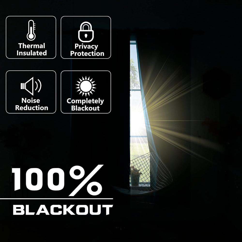 Cortinas opacas extragruesas de microfibra con triple tejido (3 capas) que forman pliegues elegantes y bloquean 90–95% de la luz y los rayos UV (mejor en colores oscuros) para un sueño reparador. Ofrecen aislamiento térmico: mantienen la habitación fresca en verano y cálida en invierno, además de amortiguar el ruido. Listas para colgar y de fácil cuidado: lavar a máquina en frío, secar en secadora, sin blanqueador y plancha a baja temperatura si es necesario.