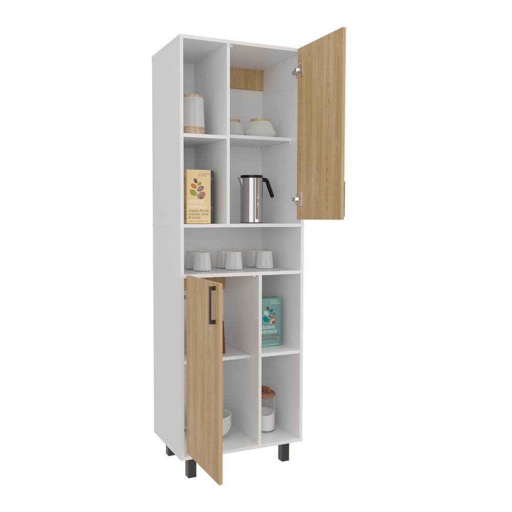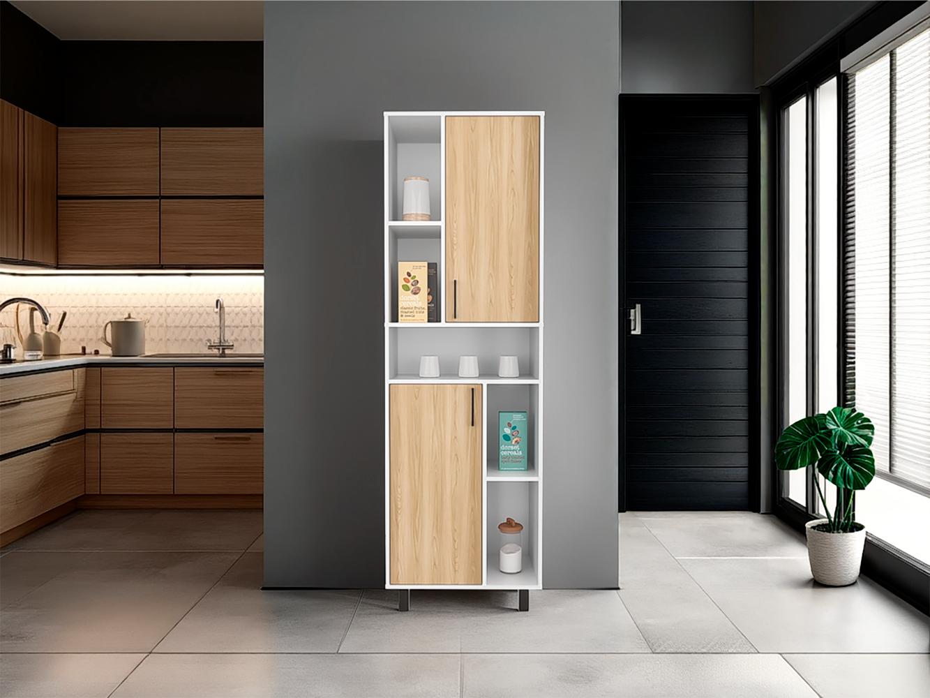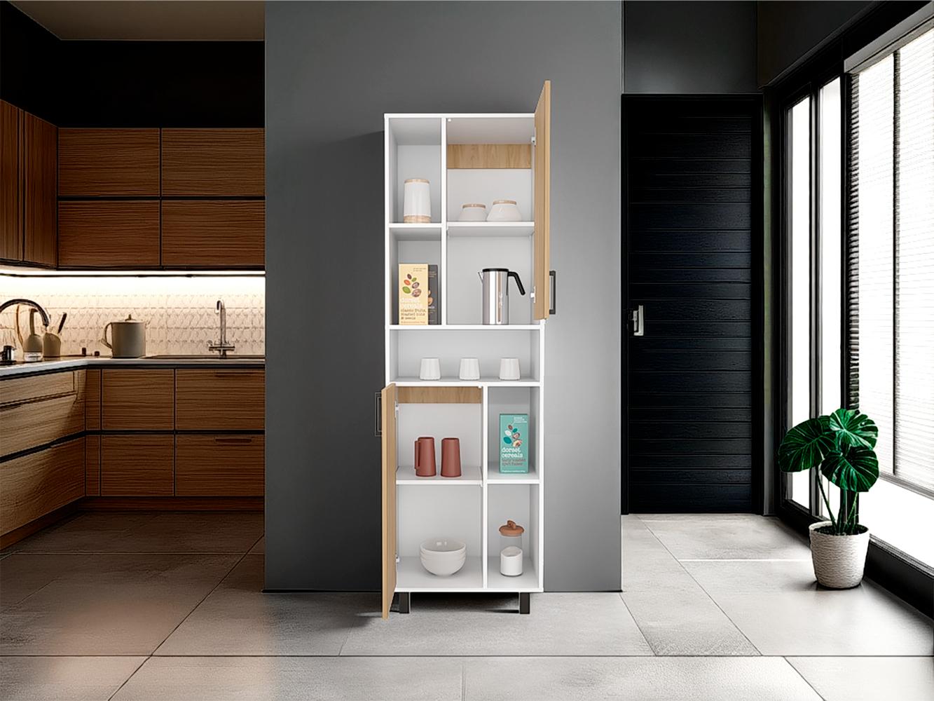 Alacena Bryce, Blanco Duqueza y Fresno Europeo, con manijas metálicas y con gran espacio de almacenamientos