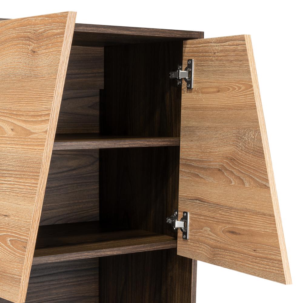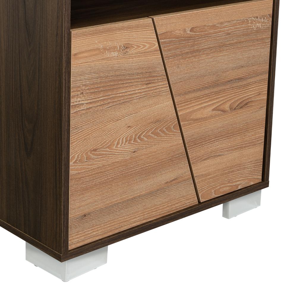 Elaborado en Madera aglomerada MDP, recubierta con láminas melamínicas de excelente calidad, en color Miel y Caoba.