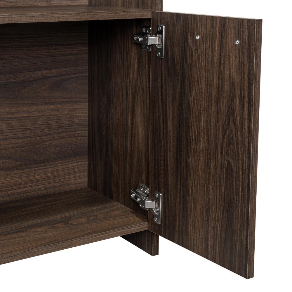 Elaborado en Madera aglomerada MDP, recubierta con láminas melamínicas de excelente calidad, en color Caoba.