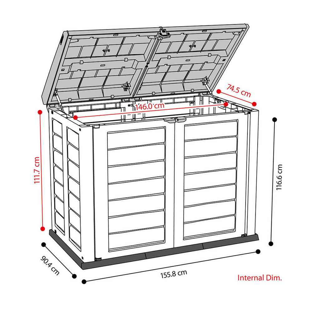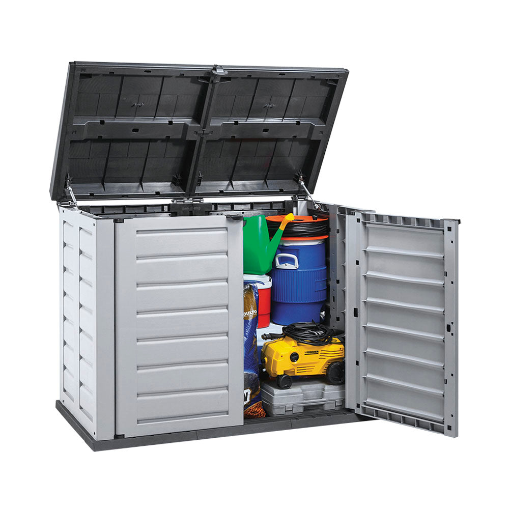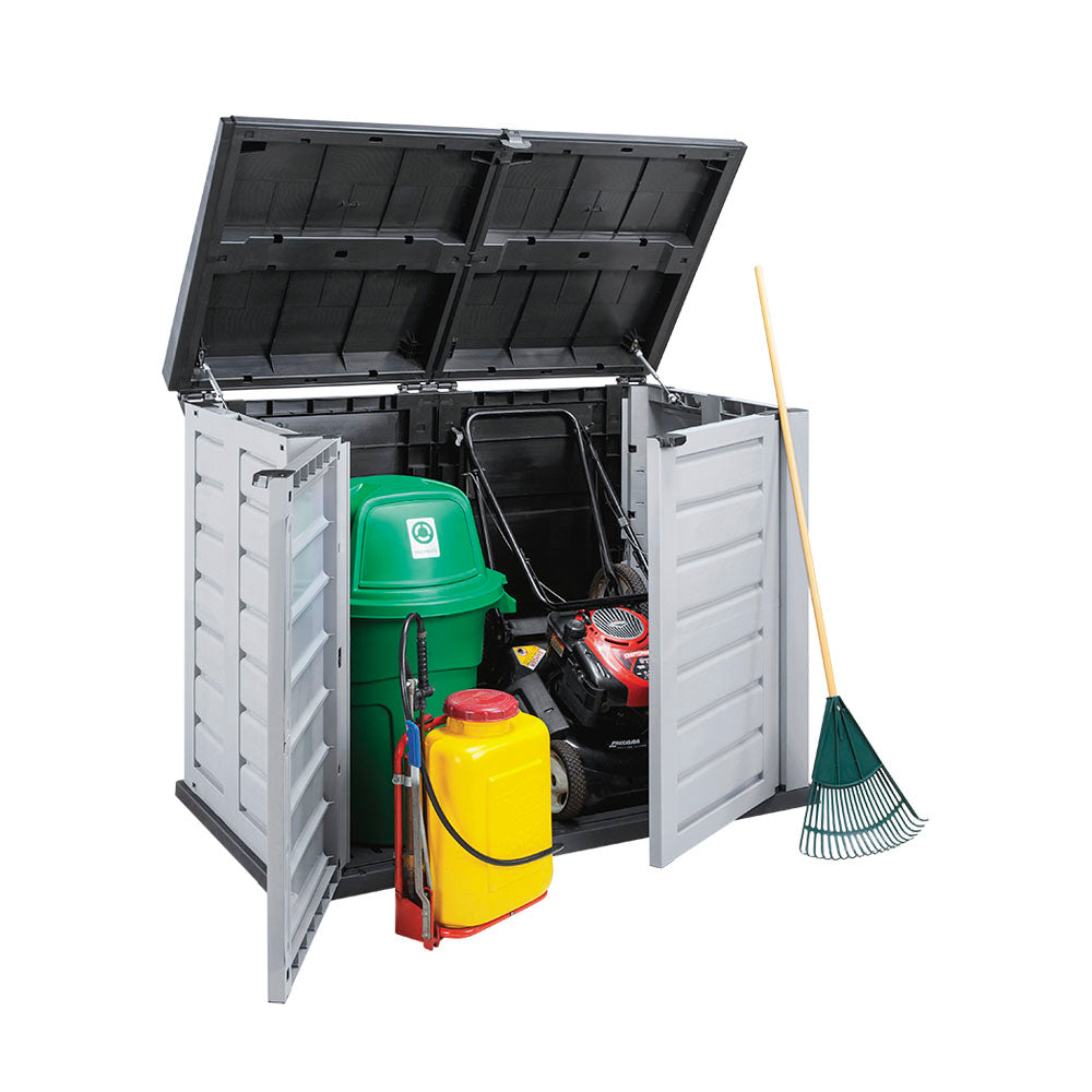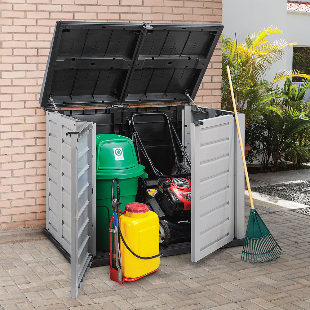 Gran solución de almacenamiento para su uso al aire libre. Se puede poner en el patio, terraza o en el interior de un garaje. Ideal para guardar maquinaria y herramientas de jardín, cojines de patio, botes de basura, bicicletas pequeñas y otros artículos de uso exterior. Ojo de candado y tapa de apertura neumática. Resistente y Duradero, no requiere mantenimiento. Fácil de armar, fácil de limpiar. Beneficios: Levantador de tapa neumatica para ajuste milimetrico. Ideal para espacios exteriores como jardines, balcones y terrazas Máximo almacenamiento en un espacio optimizado. Bloqueable Fácil de limpiar. Espacio de almacenamiento adecuado para herramientas y equipos de jardín. Materiales duraderos que resisten las inclemencias del tiempo. Diseño compacto que se adapta a cualquier jardín. Proporciona seguridad y organización en el espacio exterior. Fácil montaje y mantenimiento sencillo. Versátil para almacenar diversos artículos al aire libre.