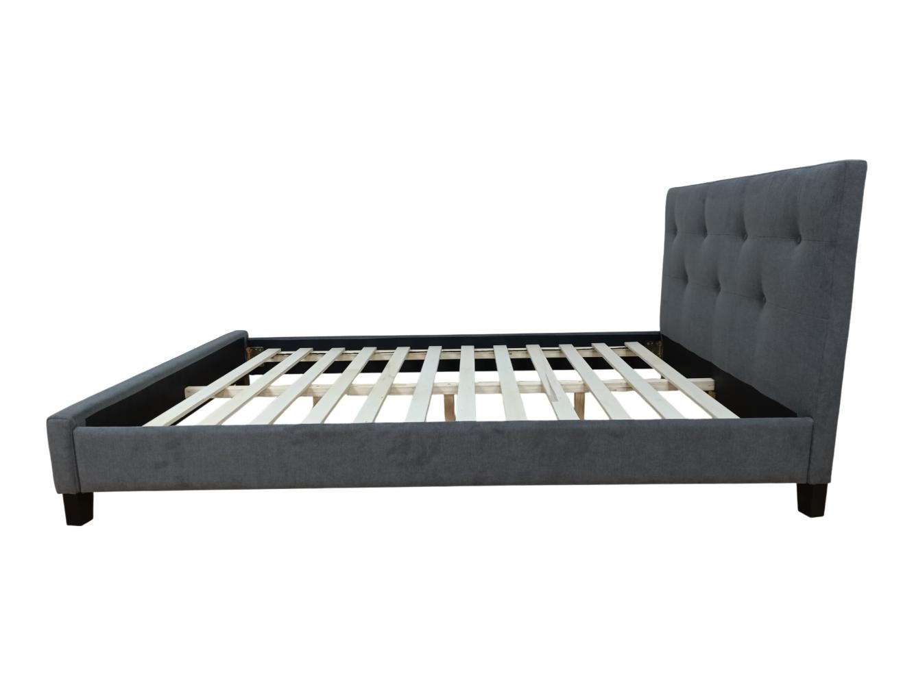 Cama Doble Imperial, Gris Oscuro, Madera roble tapizada