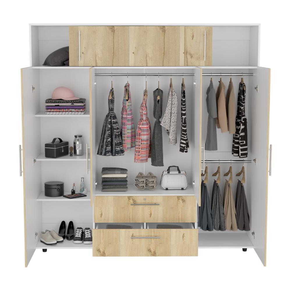 Closet Babel, Café Claro y Blanco, con Cuatro Puertas Abatibles y Cuatro Cajones Multiusos