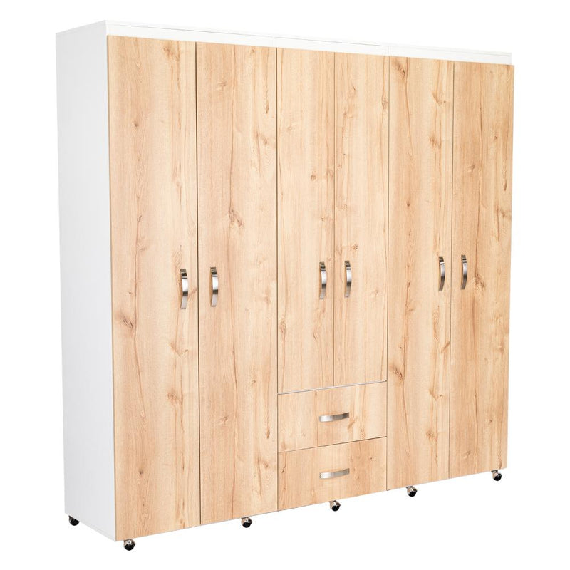 Closet, con amplios espacios y entrepaños para organizar, 6 puertas abatibles, 3 tubos cromados, 2 cajones organizadores, y deslizadores de plástico para apoyo al piso.