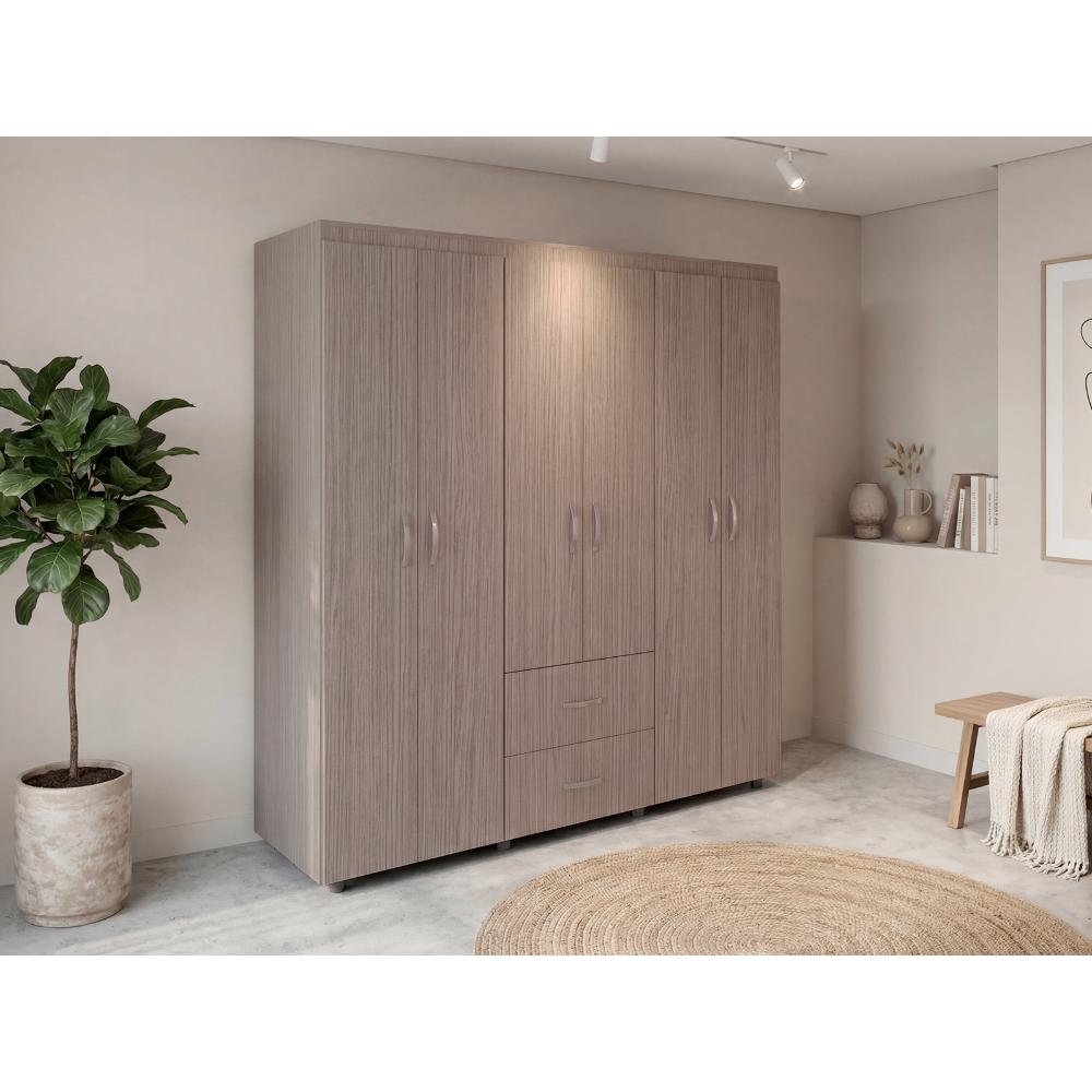 Closet Bariloche Bombay, Positano y Blanco Vainilla, Variedad de Entrepaños y Seis Puertas Abatibles