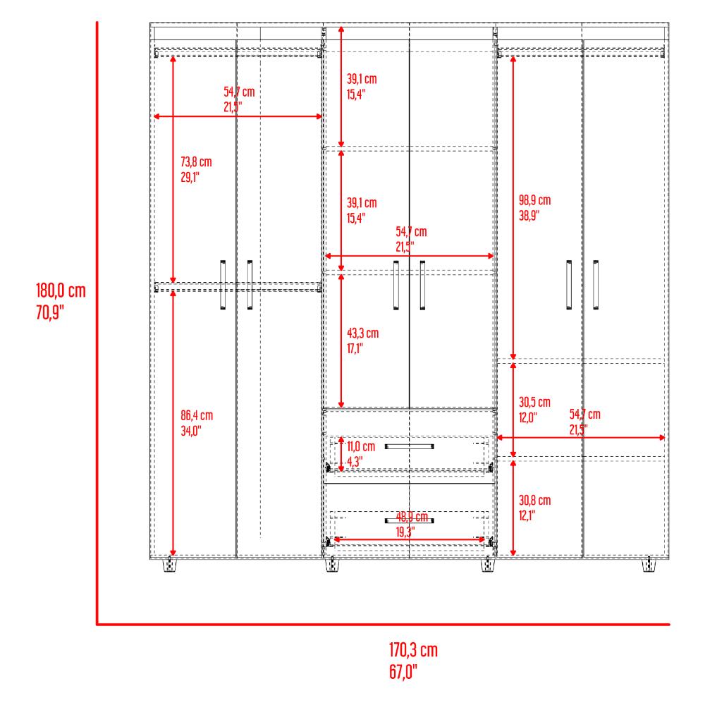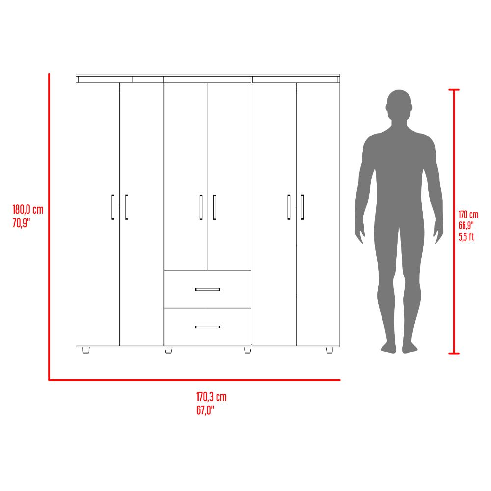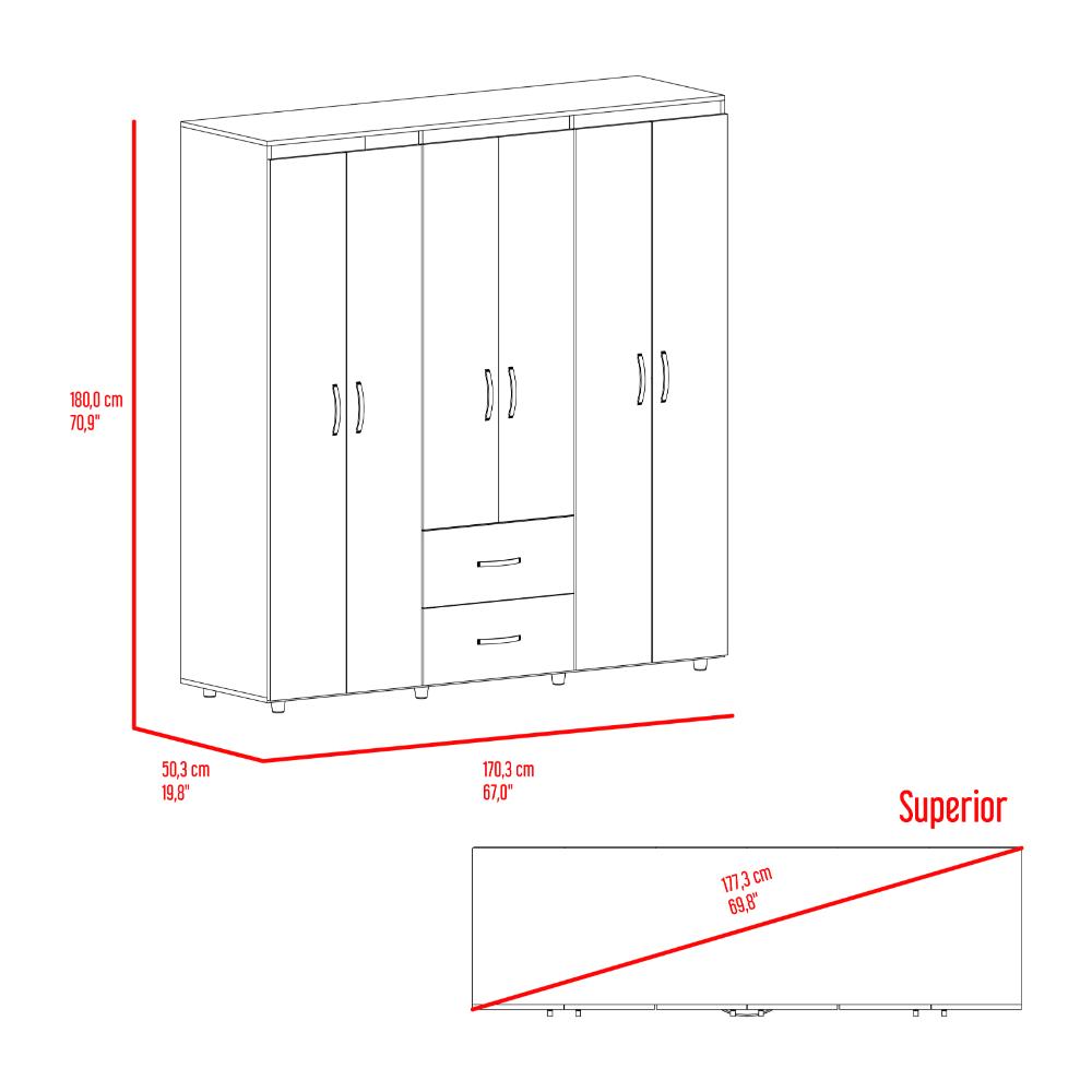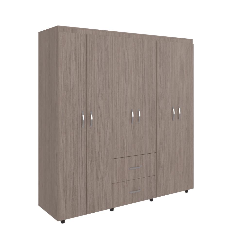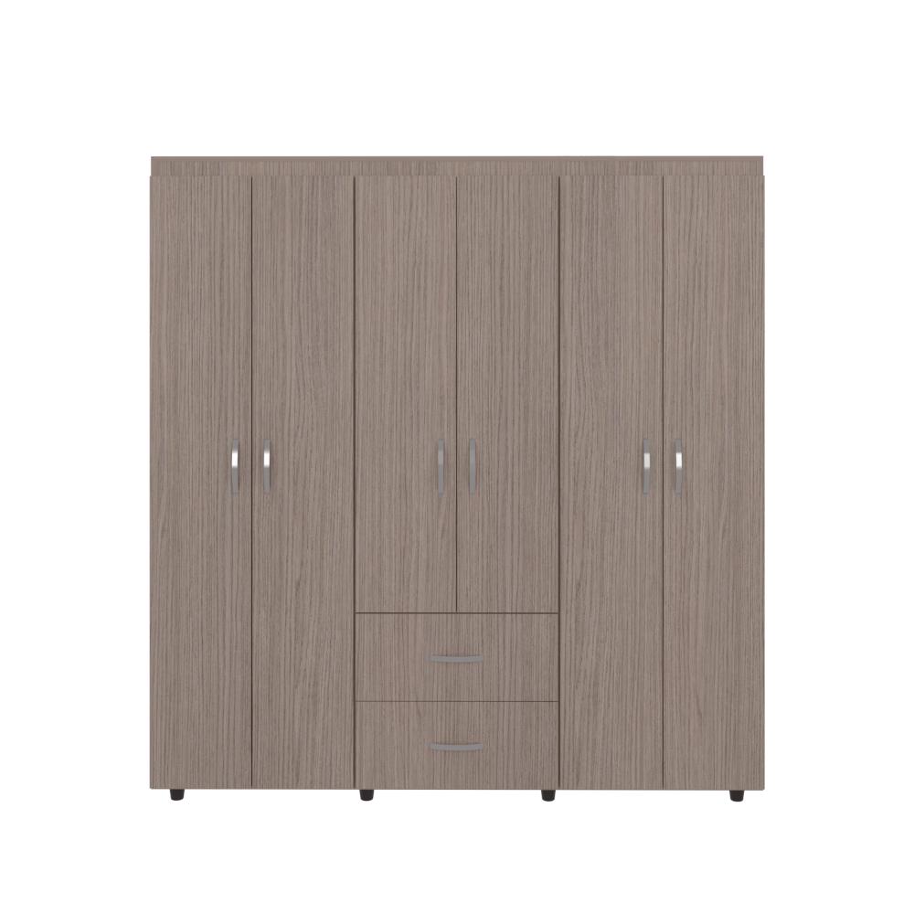 Closet, con amplios espacios y entrepaños para organizar, 6 puertas abatibles, 3 tubos cromados, 2 cajones organizadores, y deslizadores de plástico para apoyo al piso.