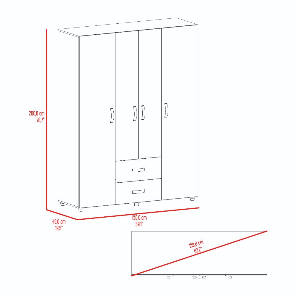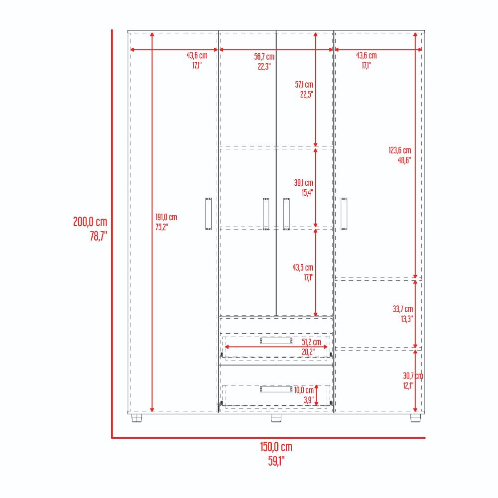 Closet Barin 150, Nevado y Blanco, con dos cajones organizadores multiusos