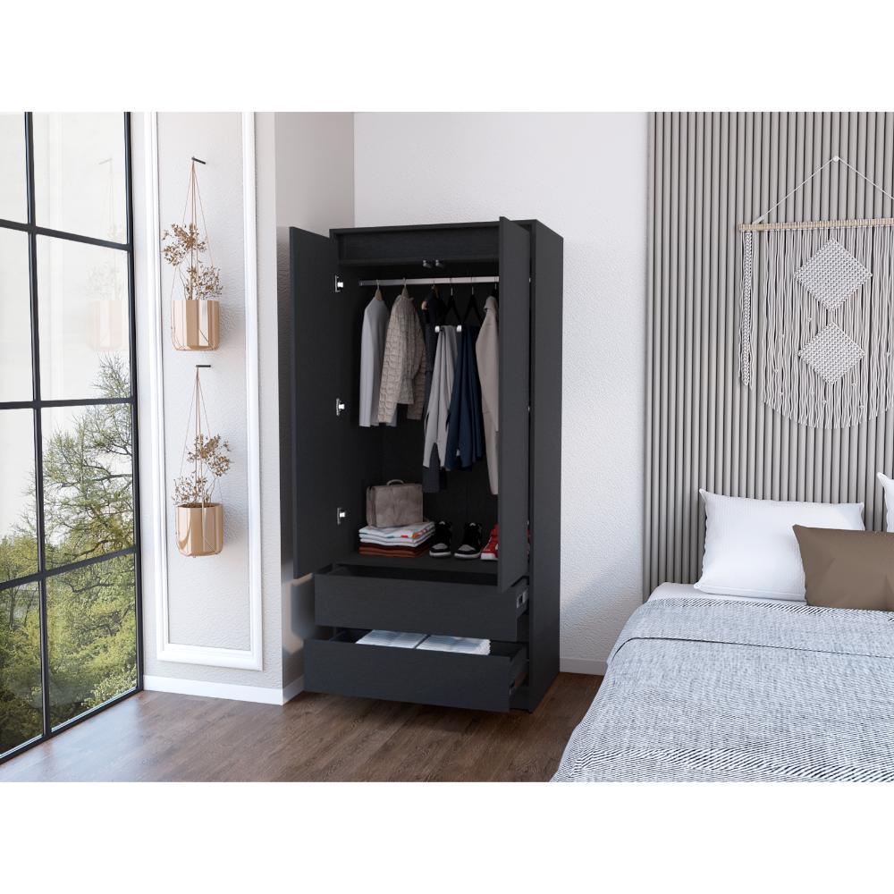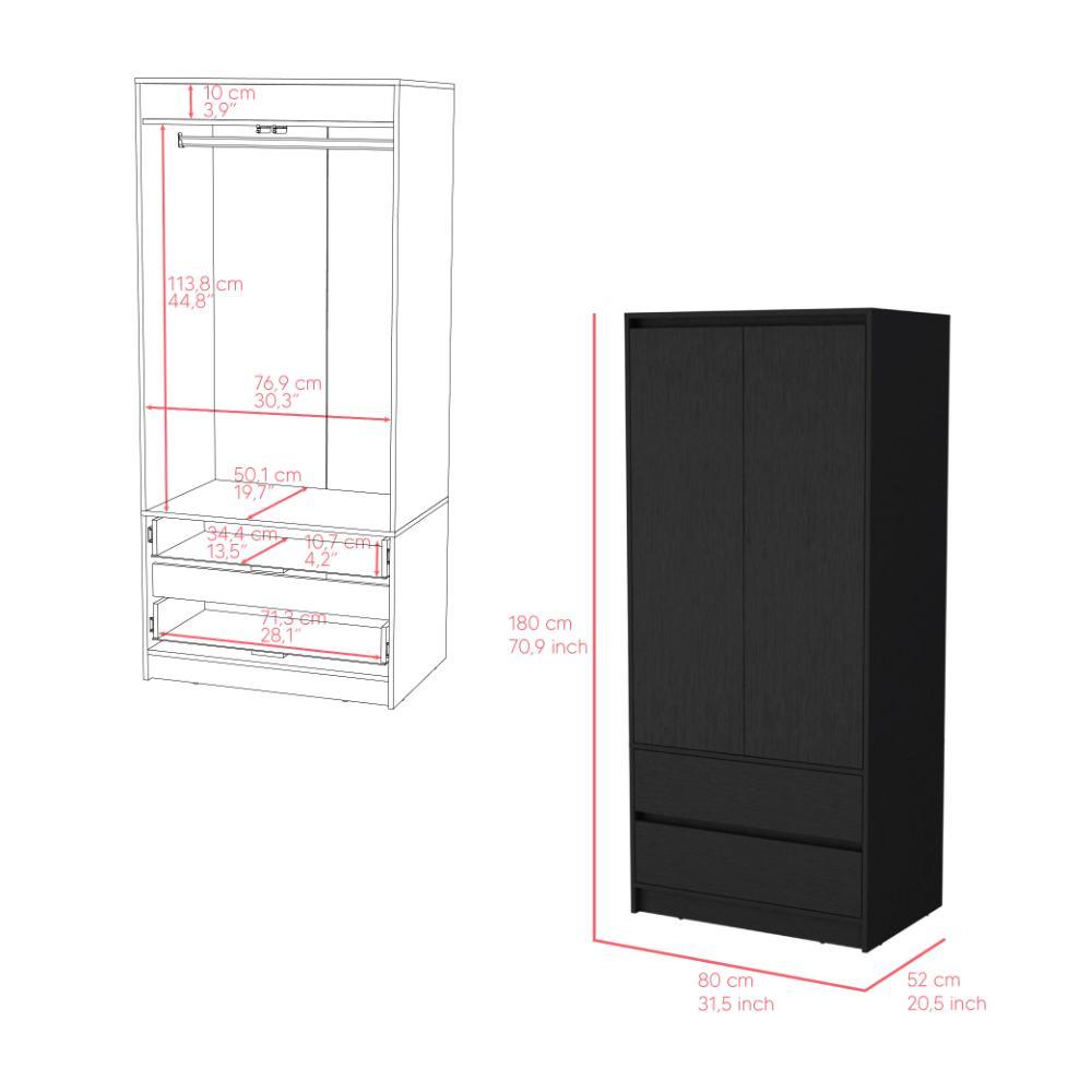 Closet, con dos puertas abatibles, dos cajones, debe ser anclado a la pared incluye lo necesario para hacerlo.