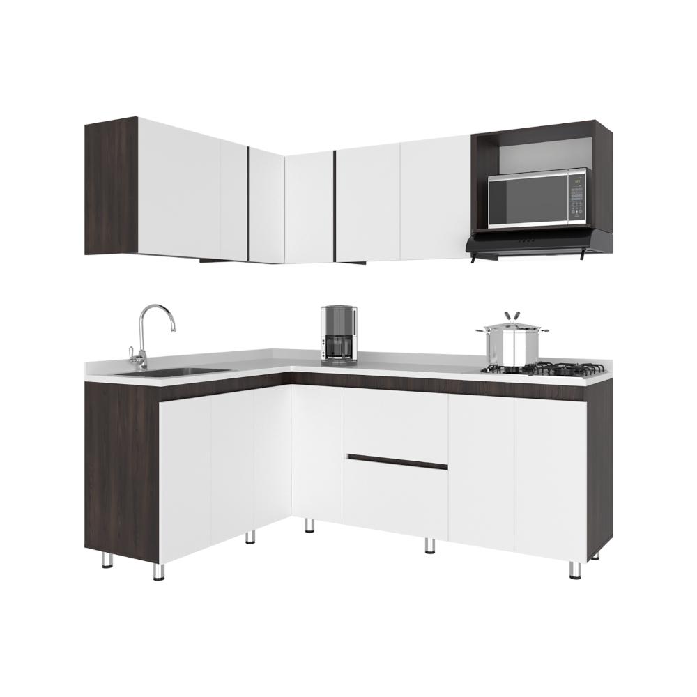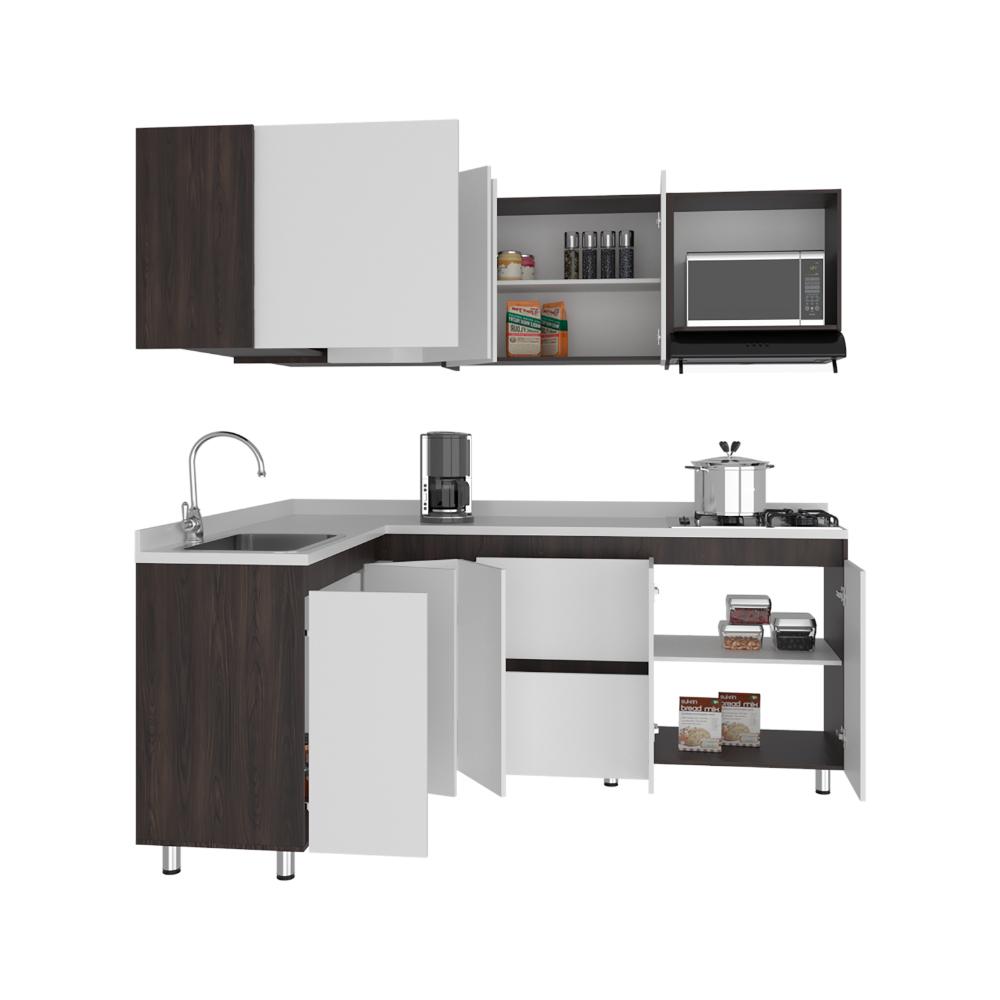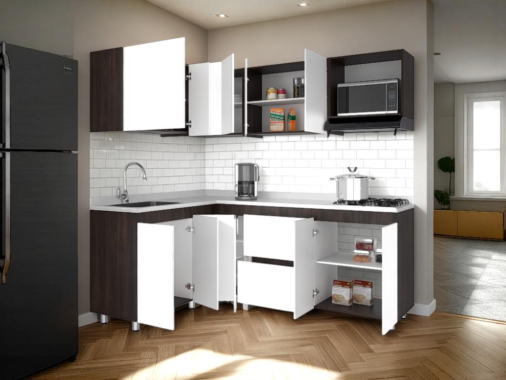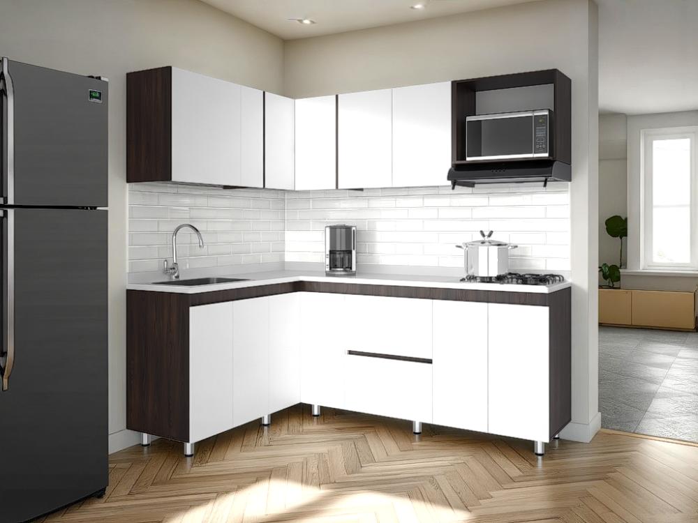 Cocina Integral en L Barn, Nogal Europeo y Blanco Duqueza, No incluye Mesón