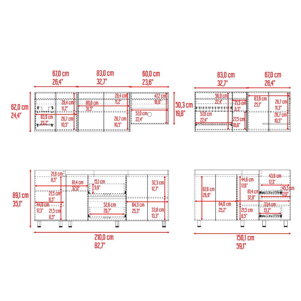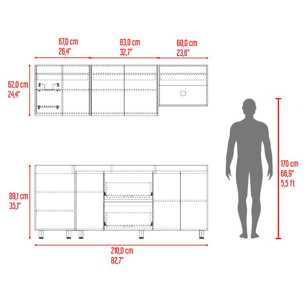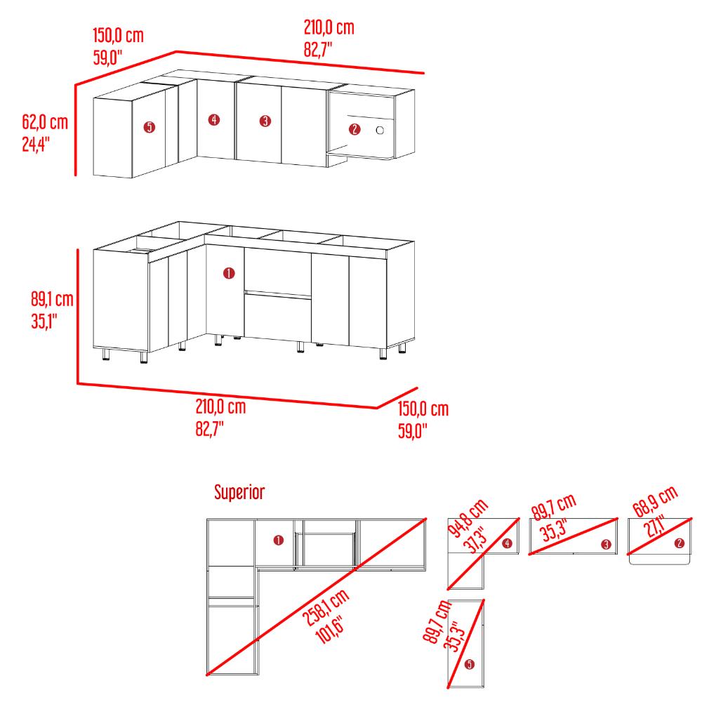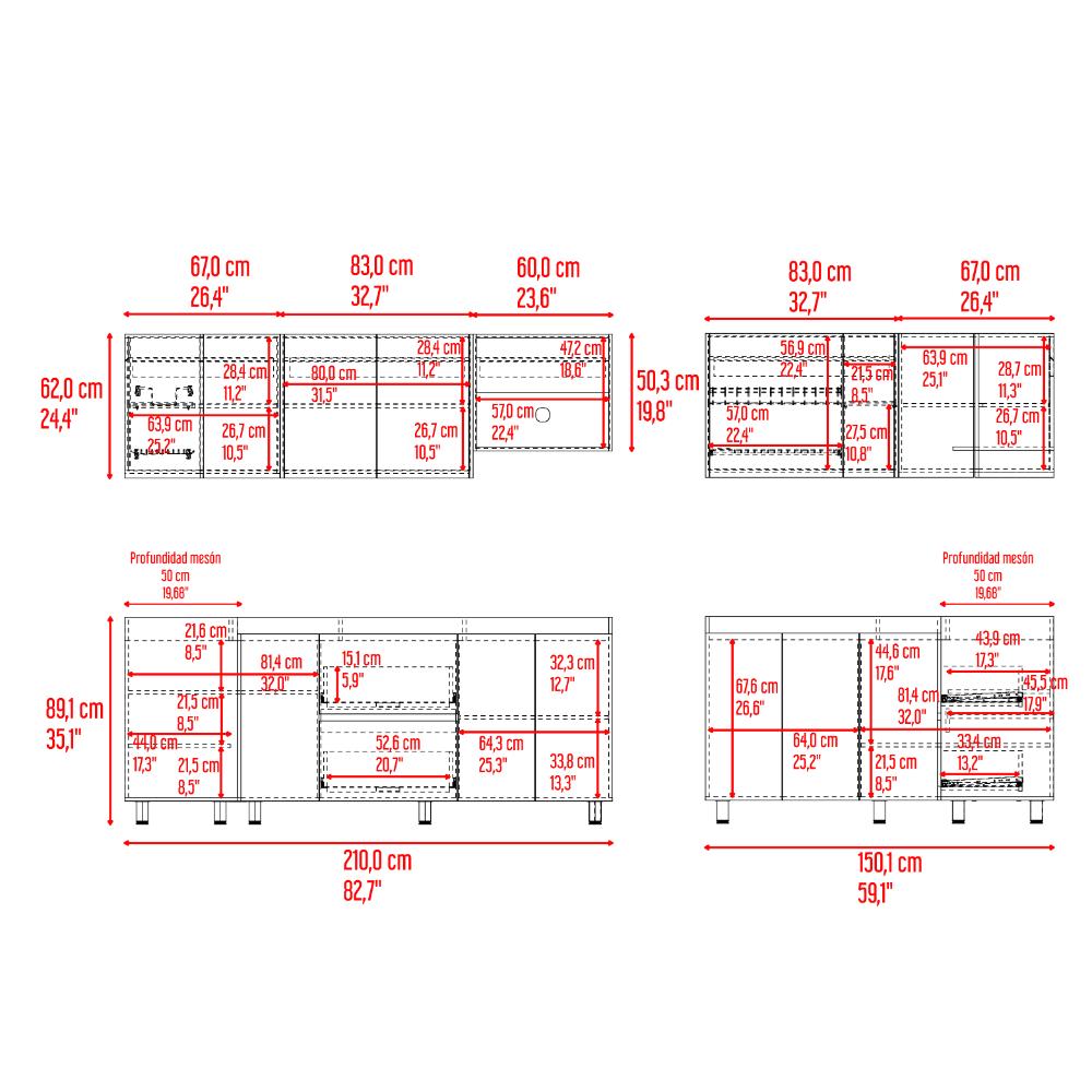 Cocina Integral en L Barn, Nogal Europeo y Blanco Duqueza, No incluye Mesón