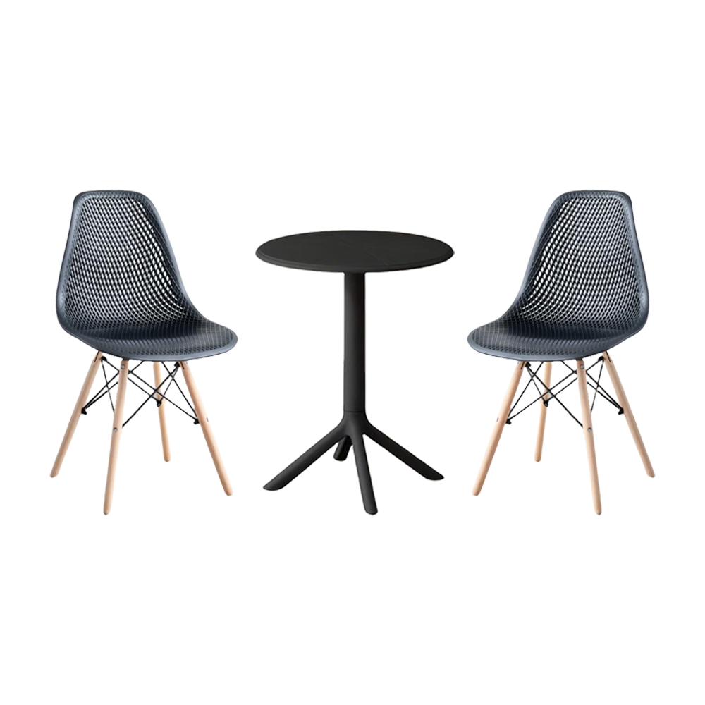 Combo Aurora, Incluye Mesa Redonda y 2 Sillas en color Negro