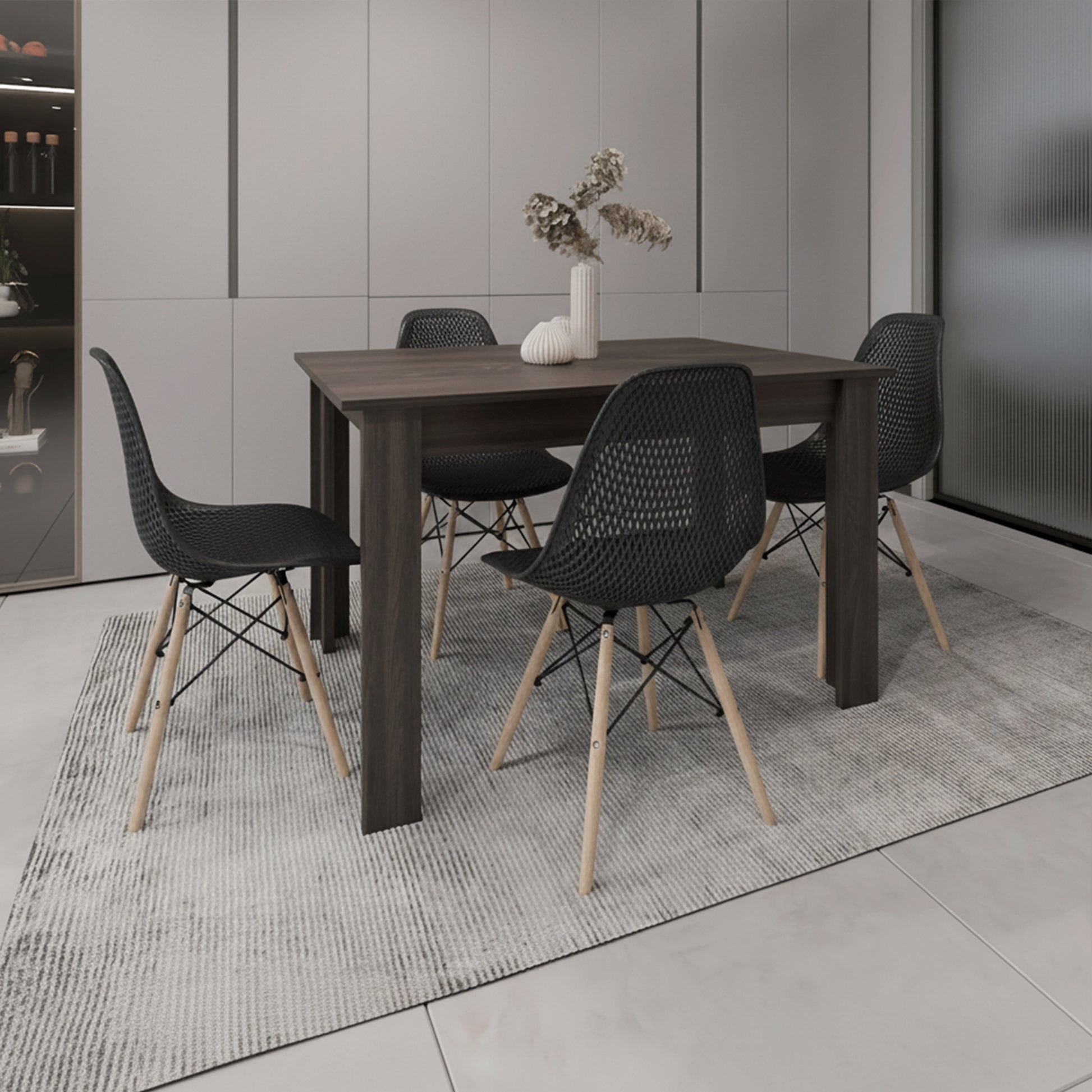 Combo Bruma, Incluye Comodor y 4 Sillas Con Espaldar En Color Negro