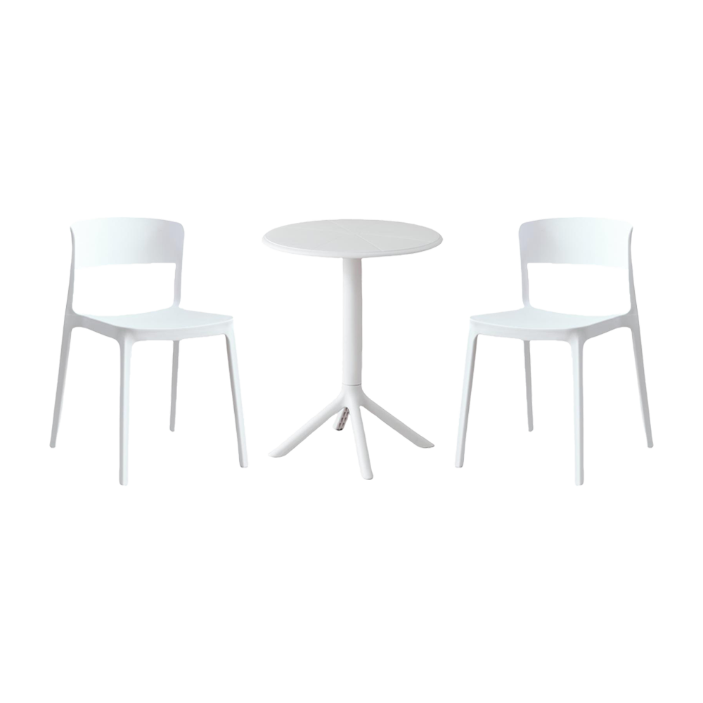 Combo Icaro, Incluye Mesa Redonda y 2 Sillas en Color Blanco