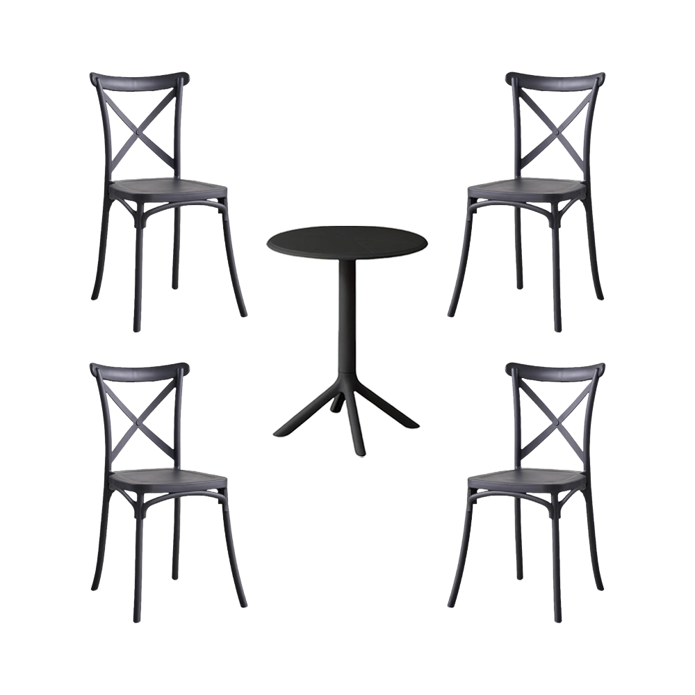Combo Lumina, Incluye Mesa Redonda y 4 Sillas en Color Negro