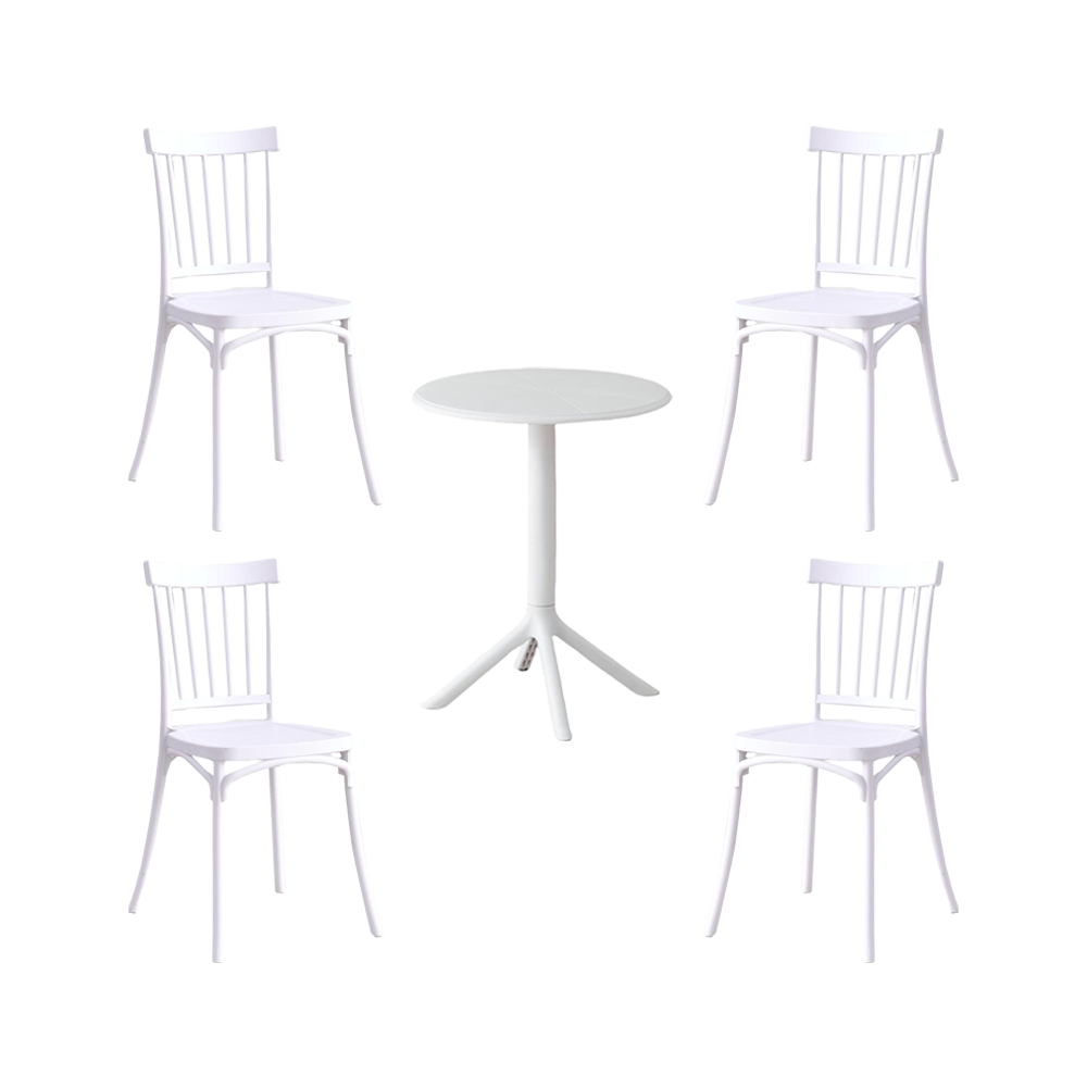 Combo Matias, Incluye Mesa Redonda y 4 Sillas en Color Blanco
