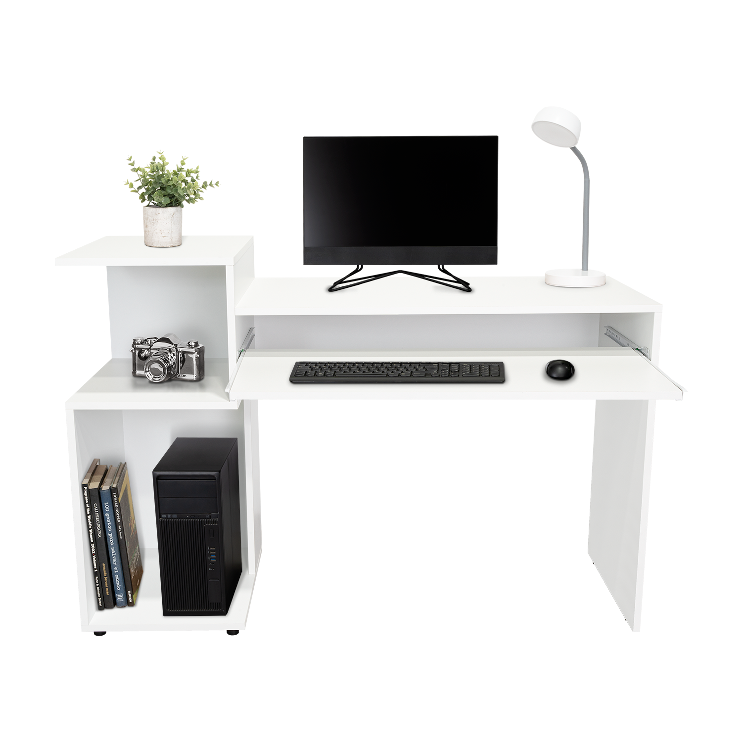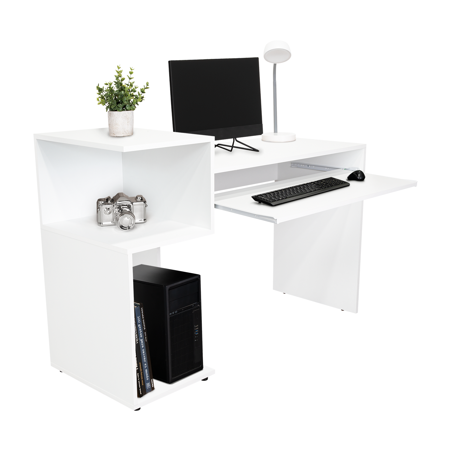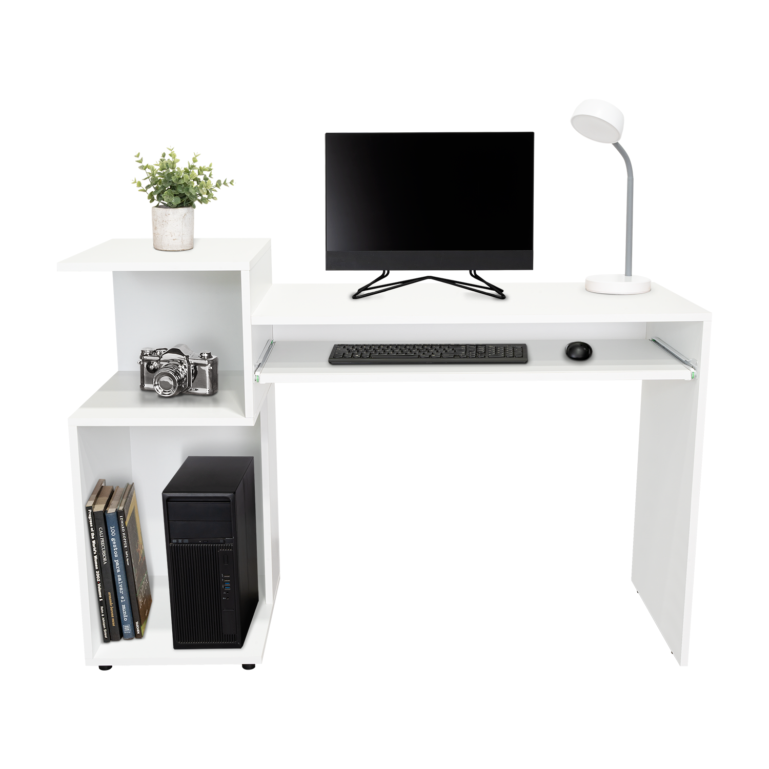 Combo Para Oficina Izan, Blanco, Incluye Escritorio y Biblioteca