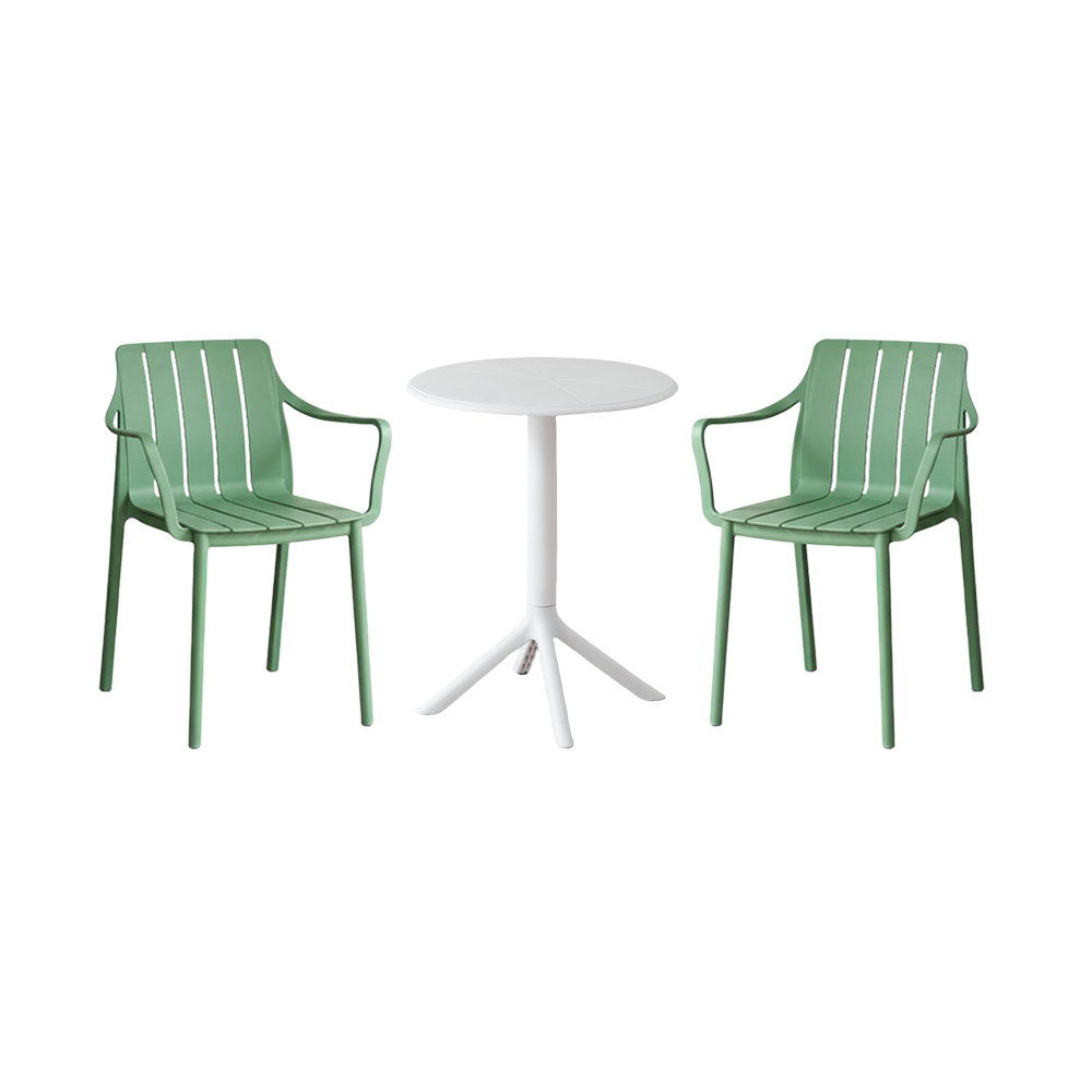 Combo Shaki, Incluye Mesa Redonda y 2 Sillas en Color Verde Olivo