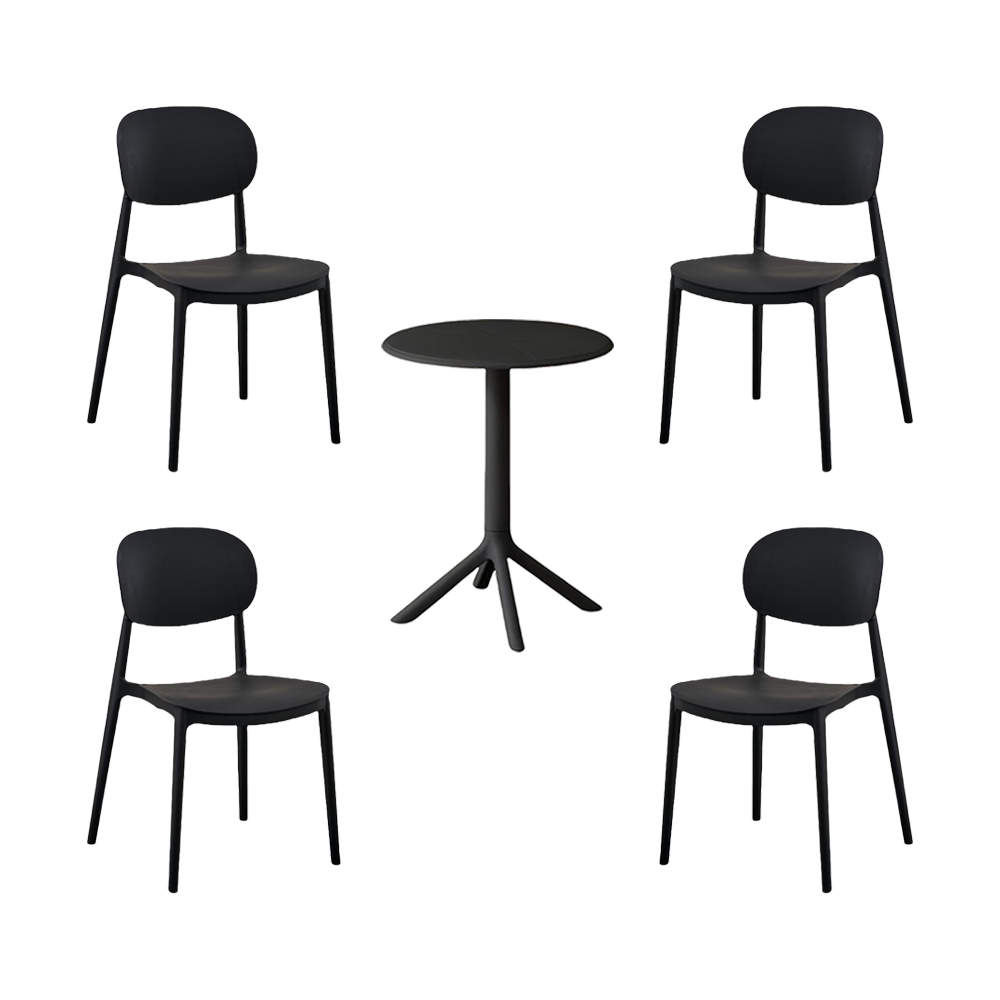 Combo Siena, Incluye Mesa Redonda y 4 Sillas en Color Negro