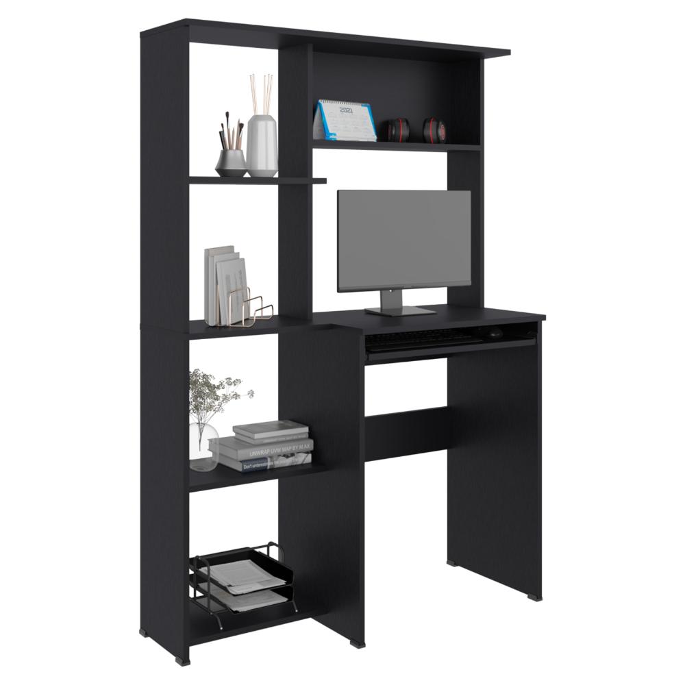 Escritorio Biblioteca Alden, Wengue, con entrepaños para colocar libros u objetos