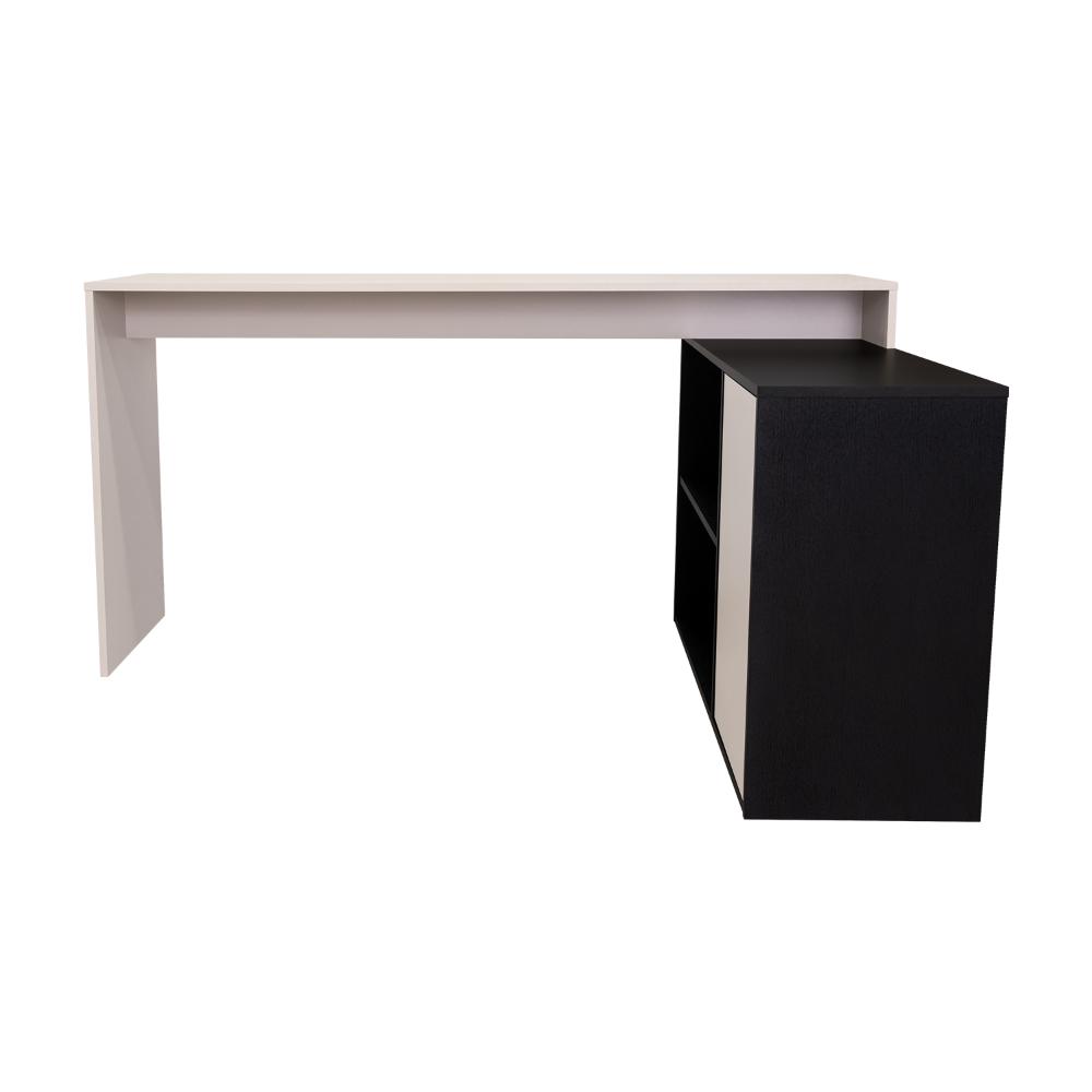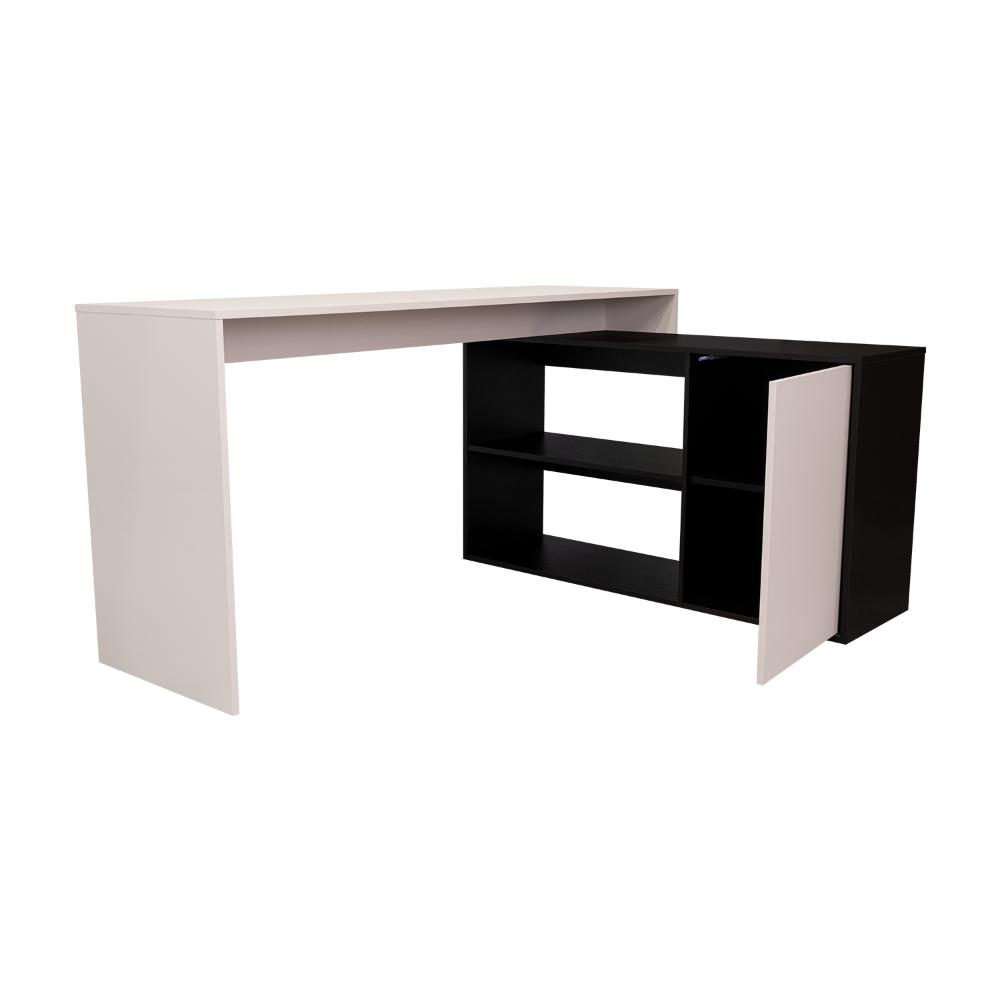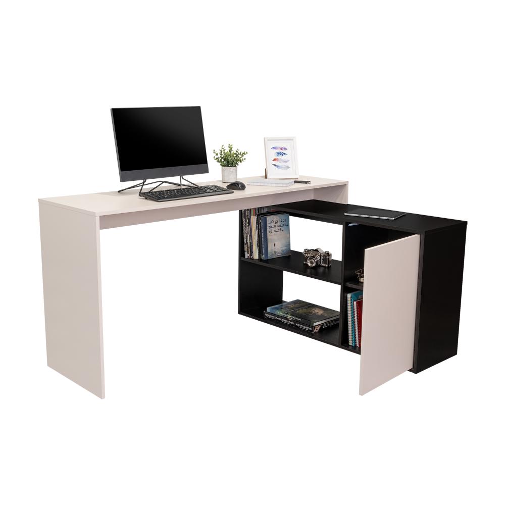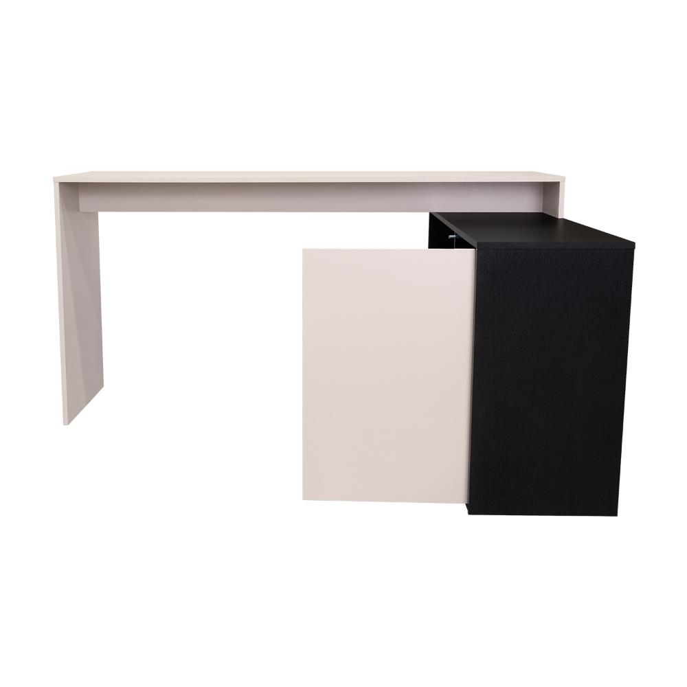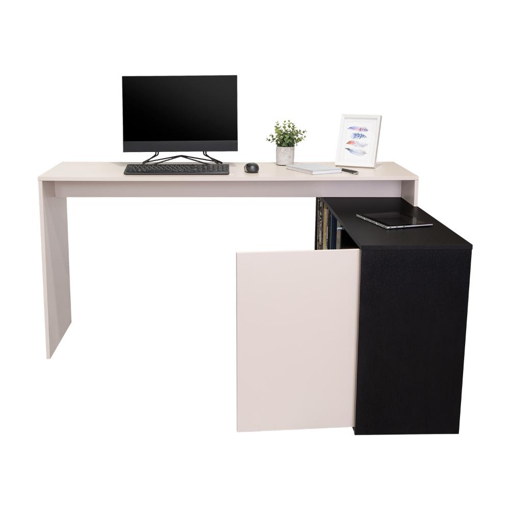 Escritorio en L Cuera, Capri y Wengue, con compartimento para objetos de estudio o decorativos