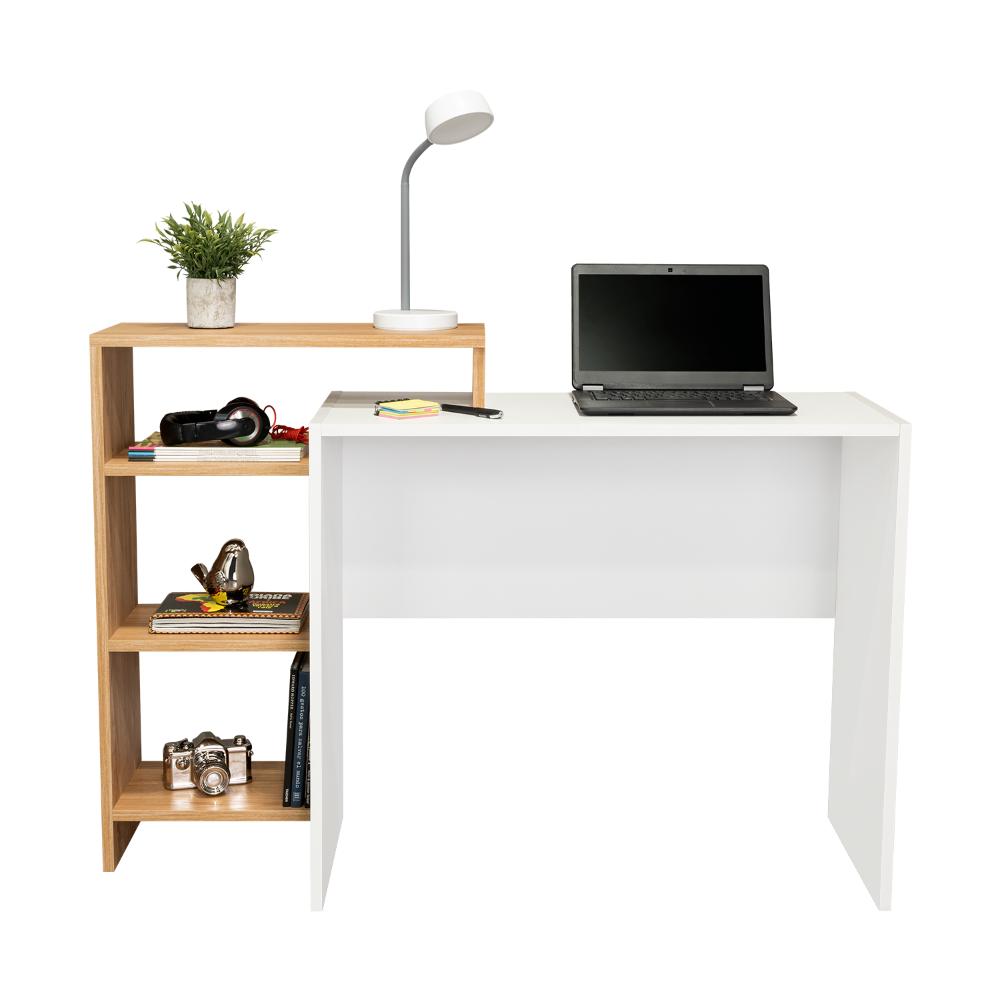 Escritorio Estelar Plus, Café Claro y Blanco, cuenta con tres entrepaños laterales