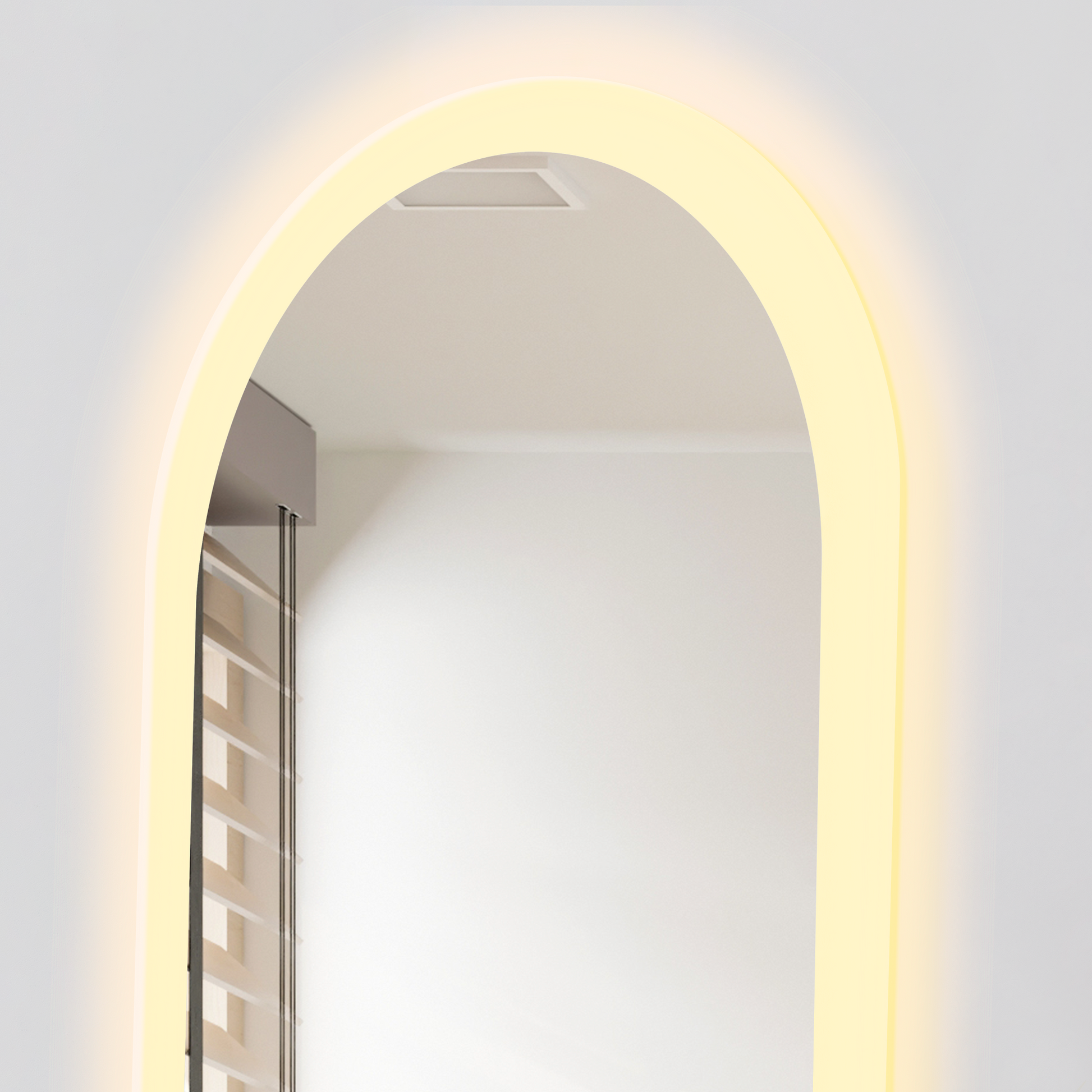 Espejo Curvo Oviedo, Gris, con Luz Led y Botón Touch