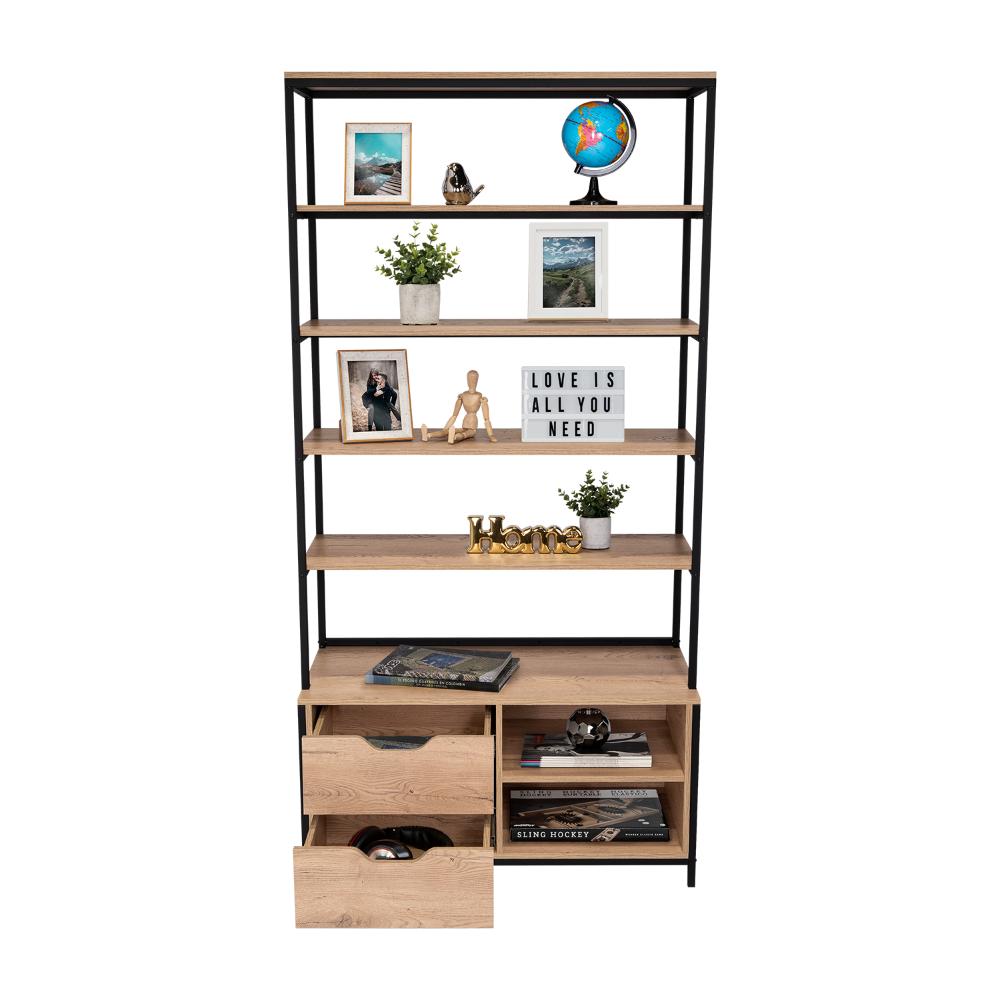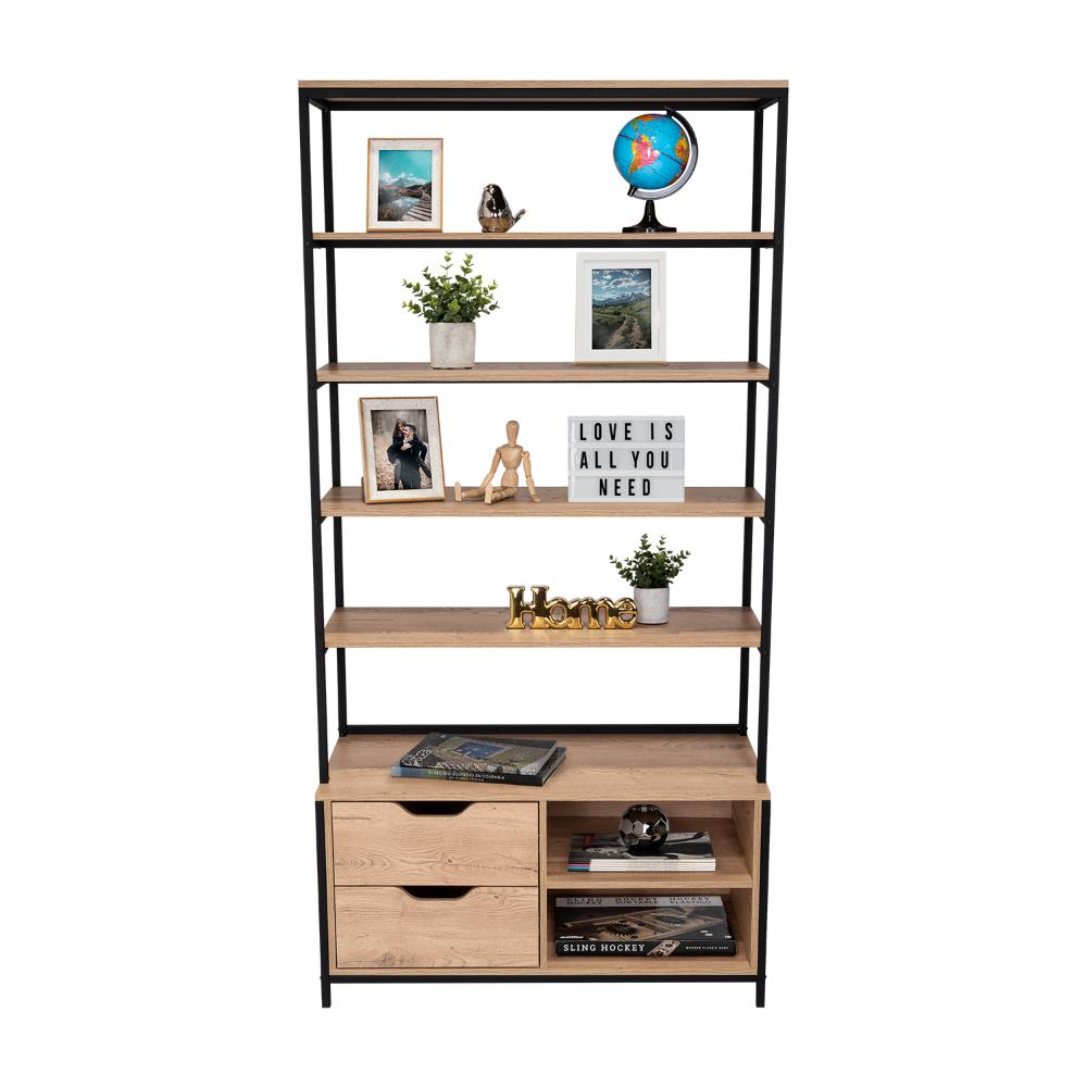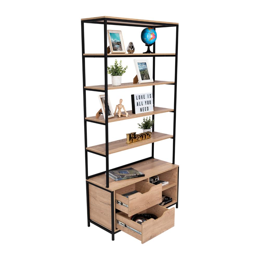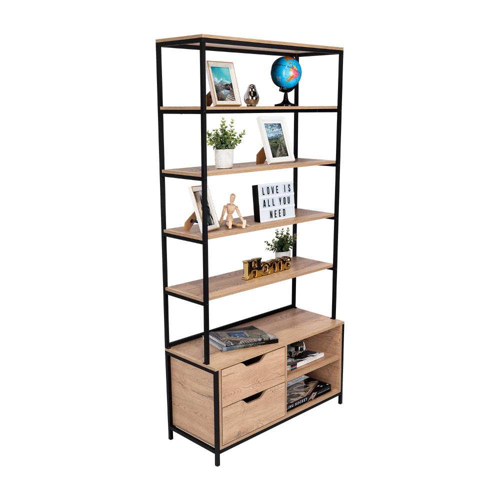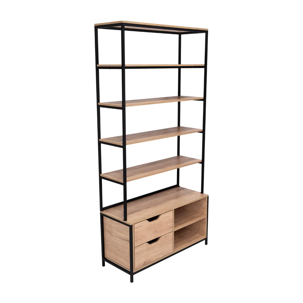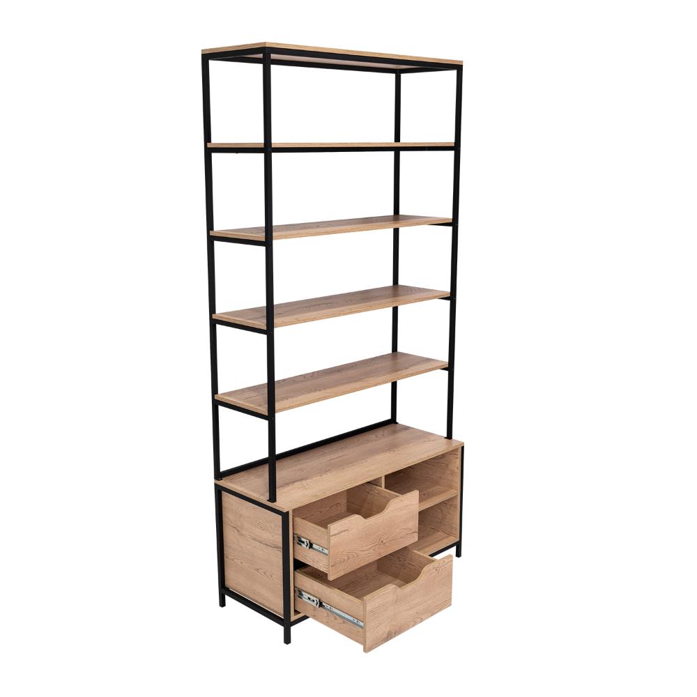 Estantería Wolfe, Macadamia, Con cinco entrepaños y dos cajones