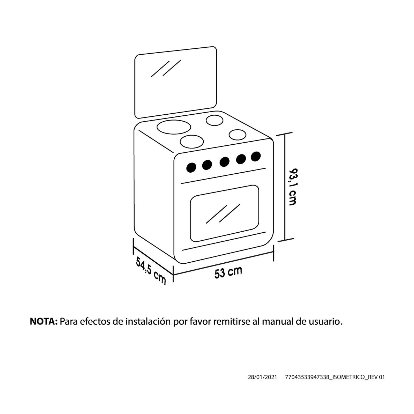 Estufa Haceb mixta con mesa de 50 cm en acero inoxidable para gran durabilidad, fácil limpieza y visor más amplio. Cuenta con 4 fuentes de calor, 1 eléctrica y 3 a gas. Sus parrillas antideslizantes brindan estabilidad, seguridad y alta eficiencia.