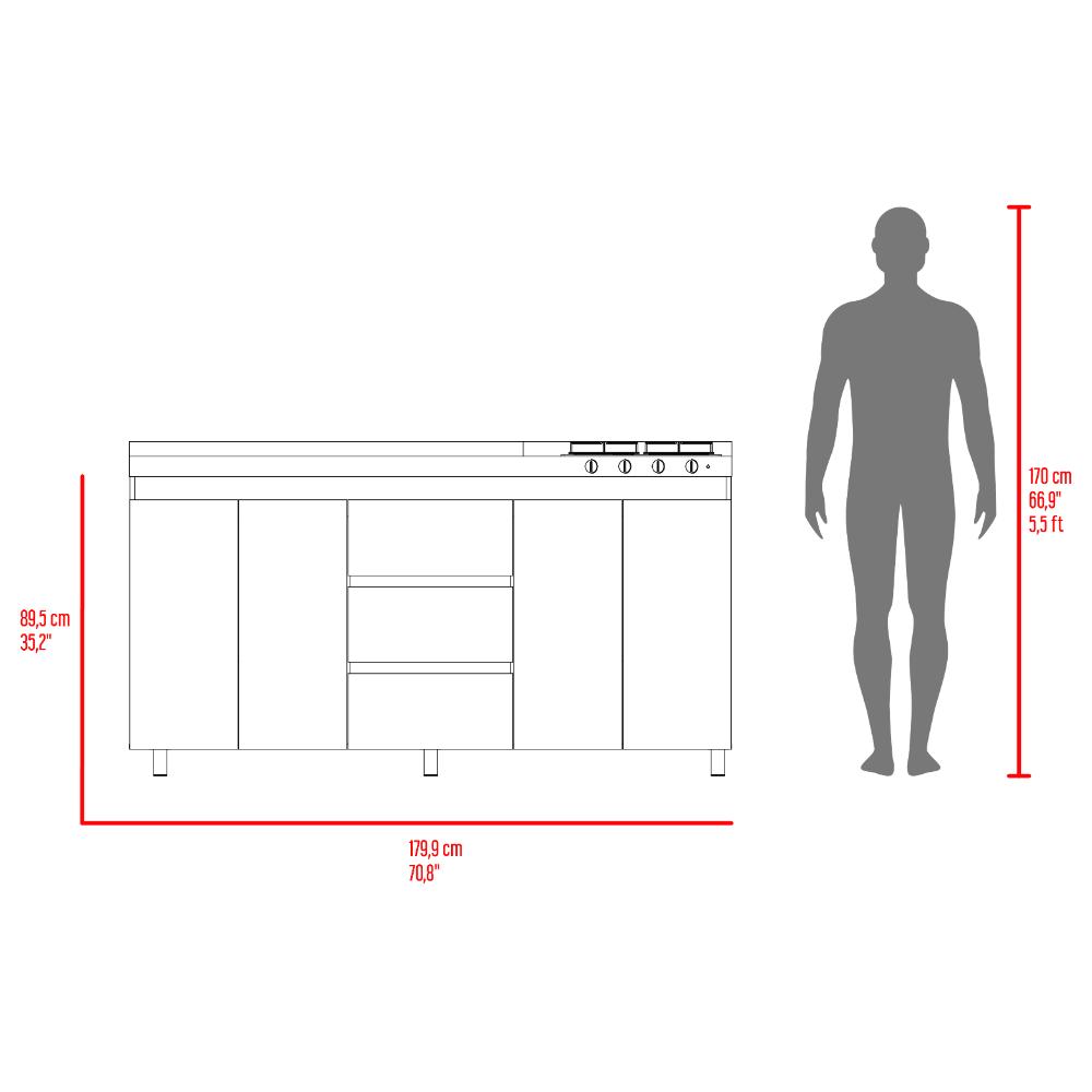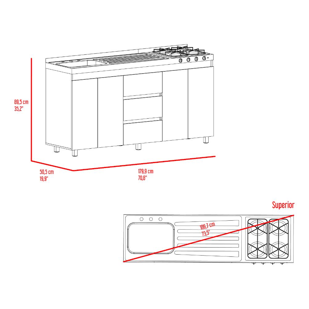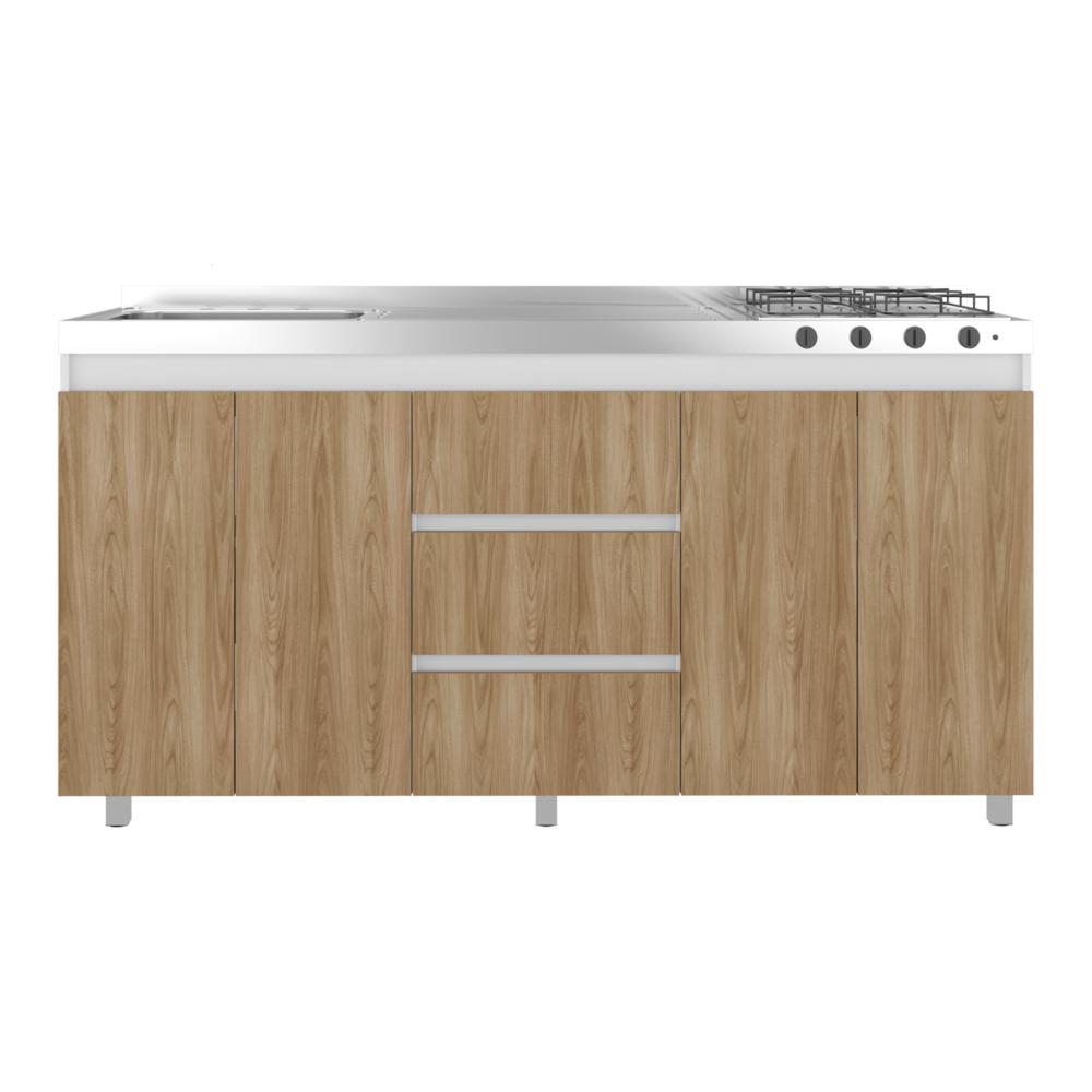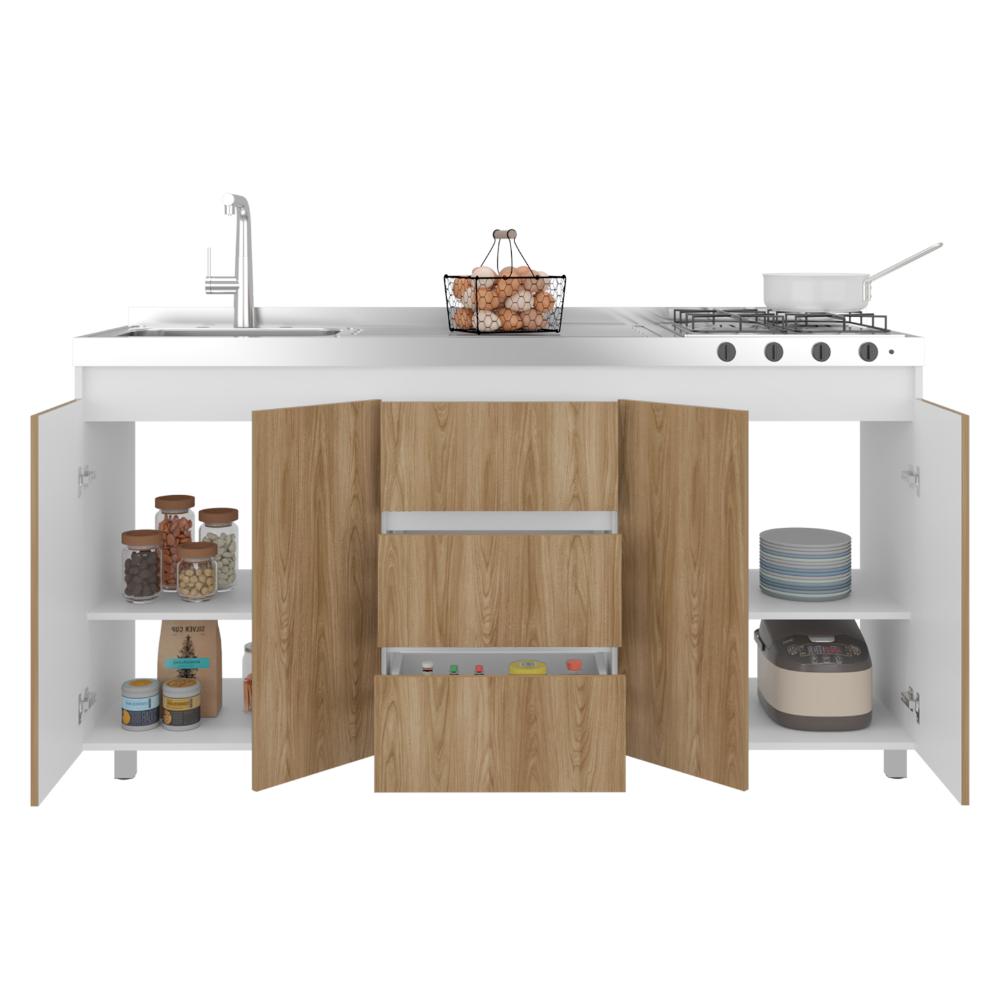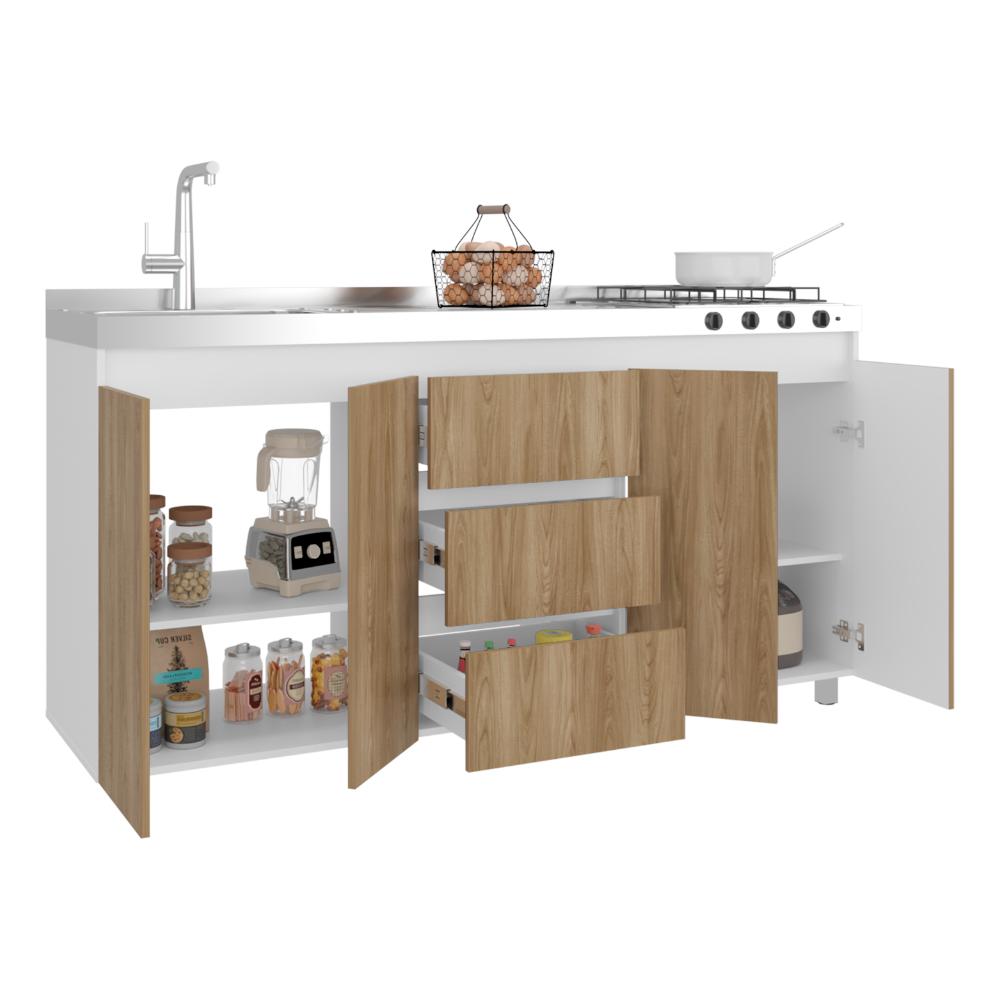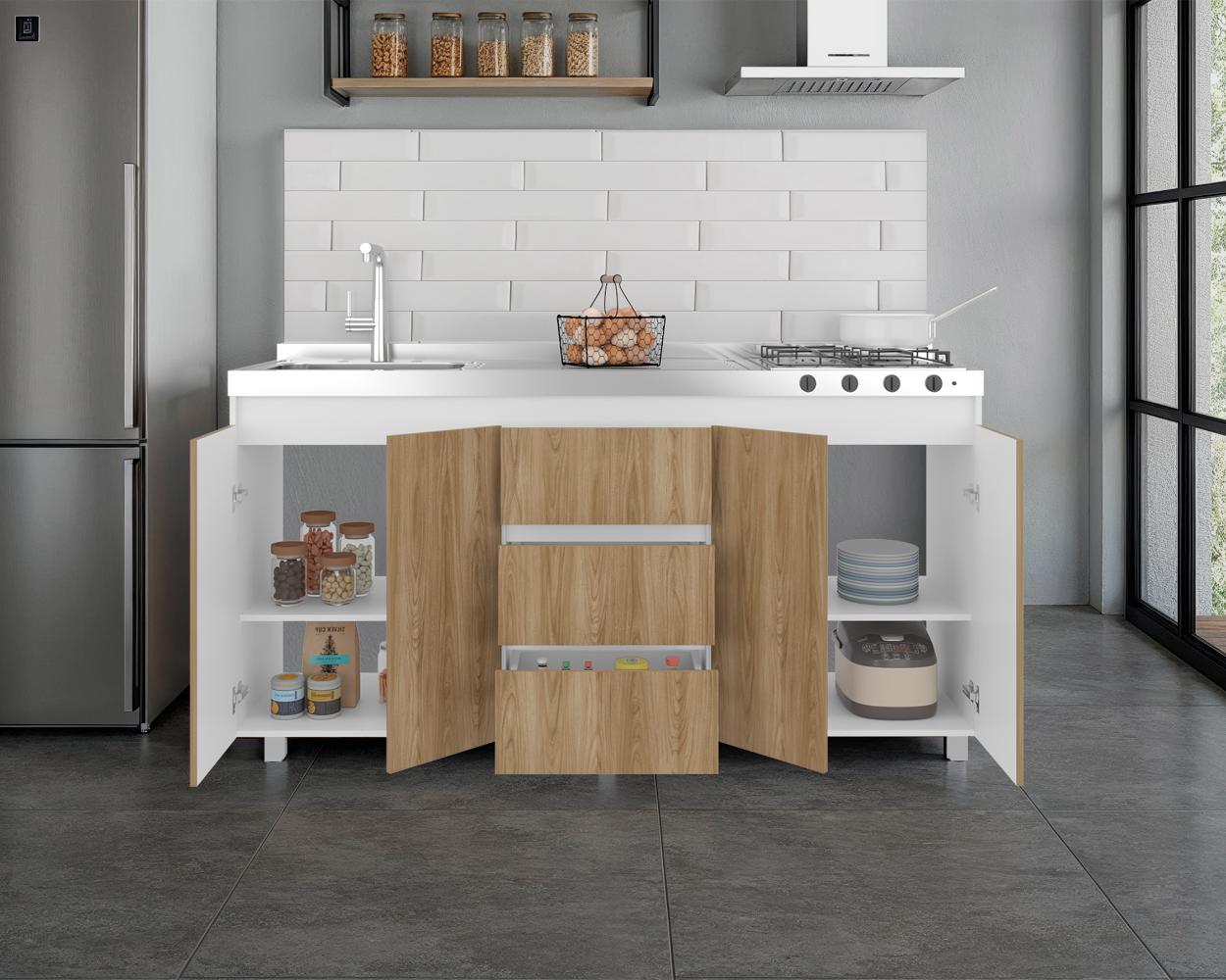 Gabinete Inferior Boreal, Blanco Duqueza y Fresno Europeo, Incluye Meson Haceb Izquierdo con Quemadores