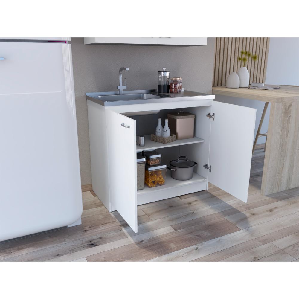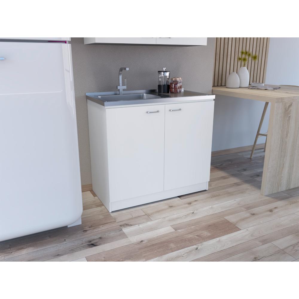 Gabinete Inferior Cantabria, Blanco Duqueza, Ideal Para Espacio Reducidos, con mesón Izquierdo