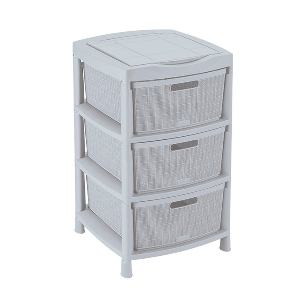 Gavetero Fique con 3 Gavetas y Tapa Organizadora Gris Hielo