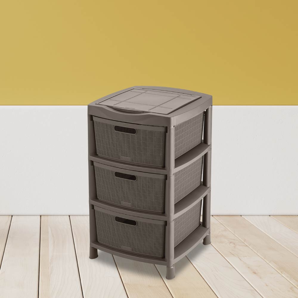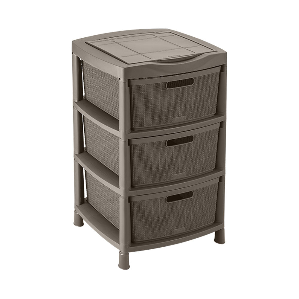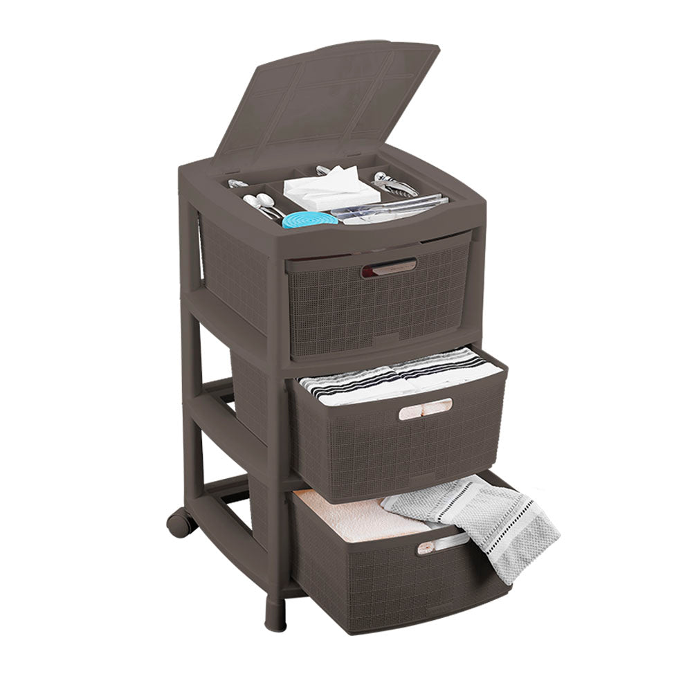 Gavetero Fique con 3 Gavetas y Tapa Organizadora Mocca