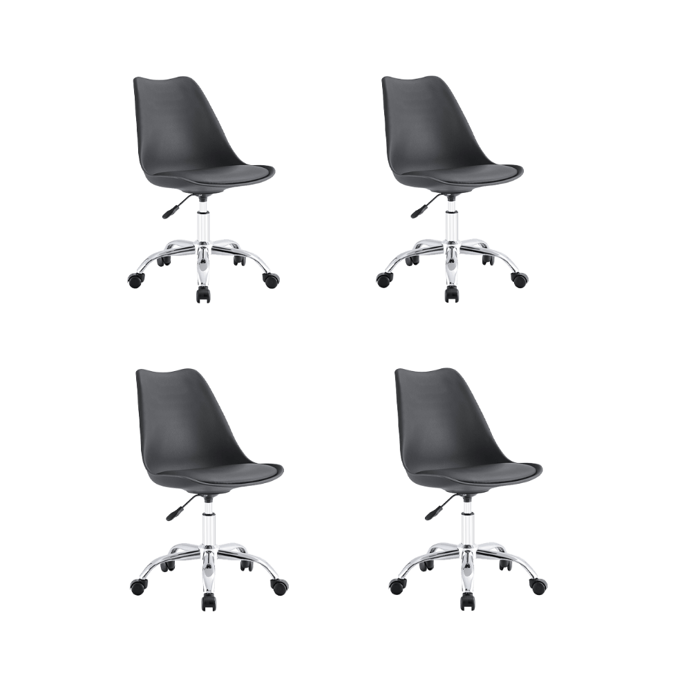 Kit de Cuatro Sillas de Escritorio Jetix, Negro, Giratoria y acolchada con base metálica