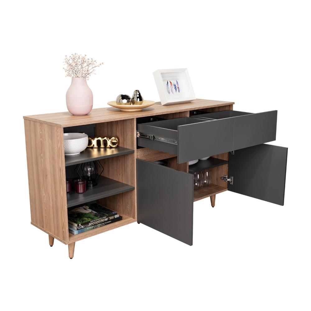 Madera aglomerada recubierta con laminas melaminicas, que garantizan protección, funcionalidad y un toque decorativo.