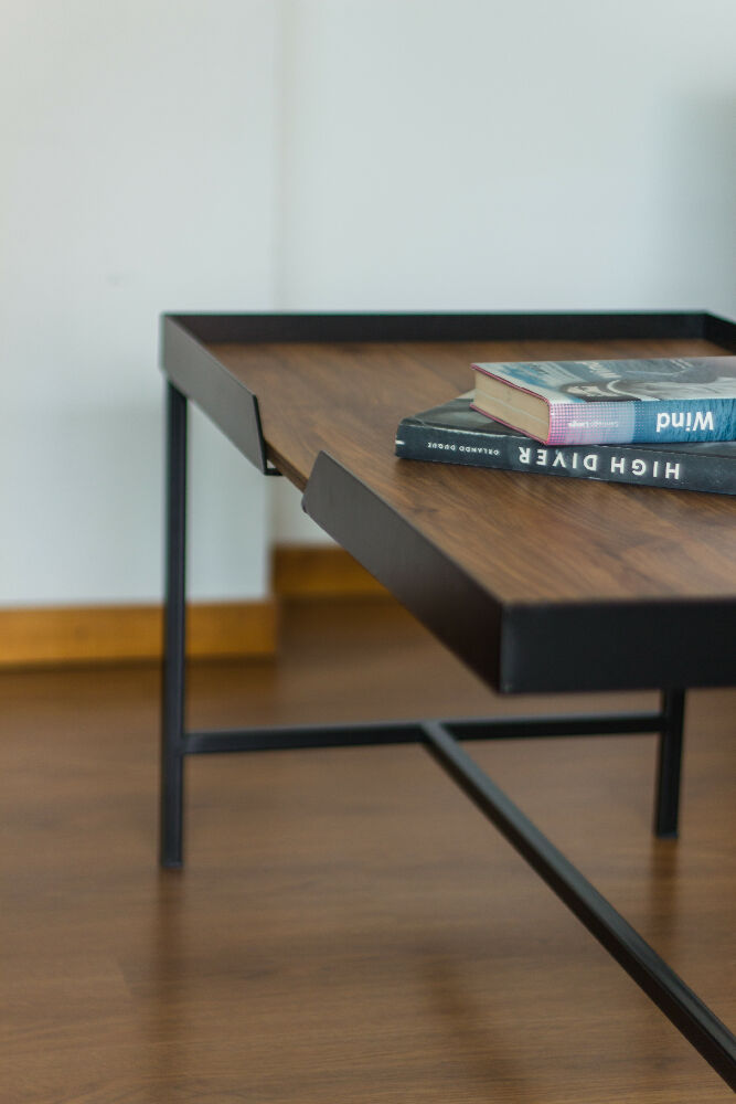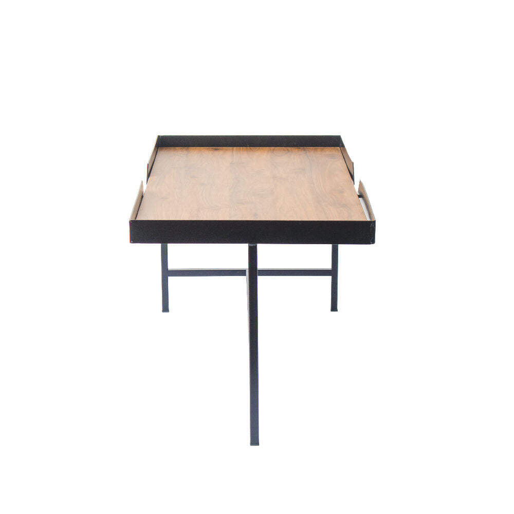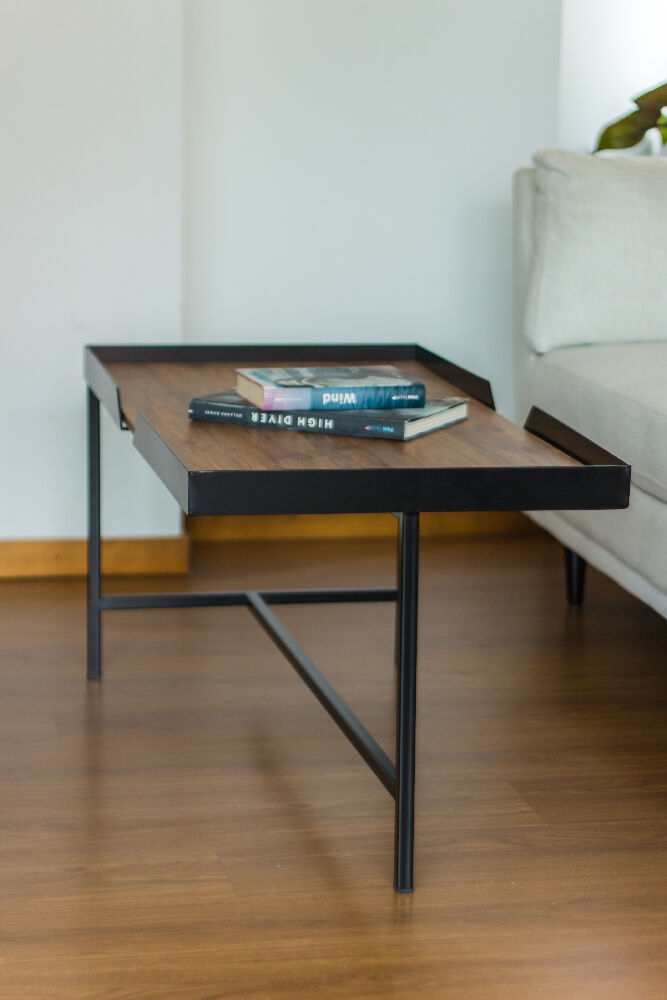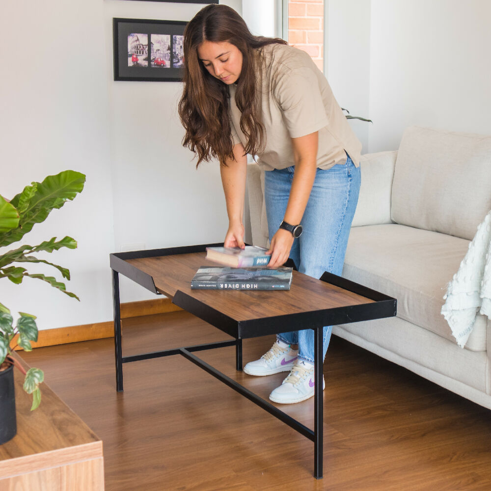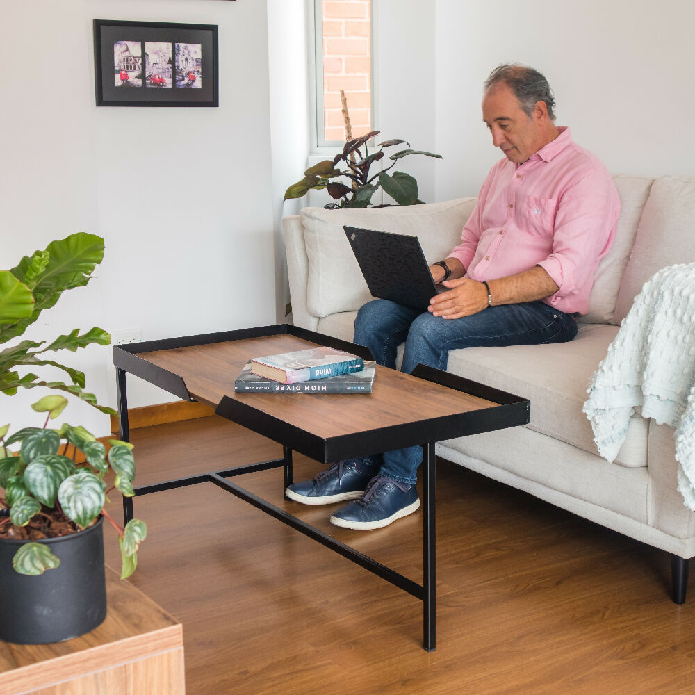 Estructura elaborada en tubería de hierro cuadrada de 1 pulgada, tablero de melamina RH importada de 15 mm, acabado en pintura electrostática negro mate liso, lo que la hace resistente y de excelente calidad.