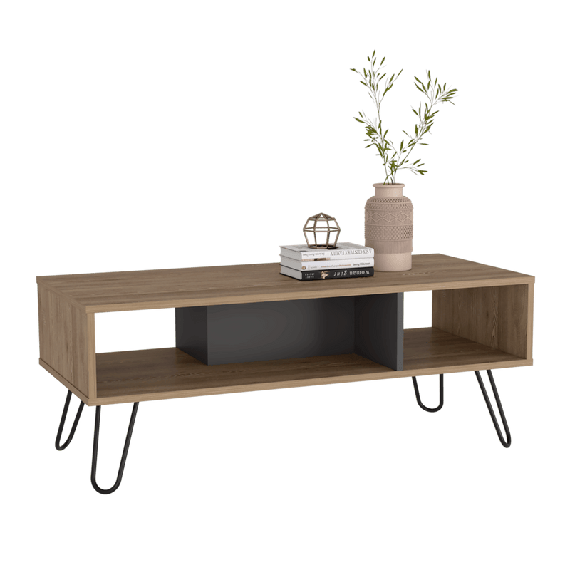 Mesa de Centro Vany, Miel y Plata Oscuro, con Amplio Espacio Para Elementos Decorativos y Patas de Acero ZF