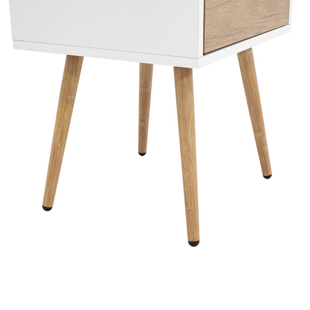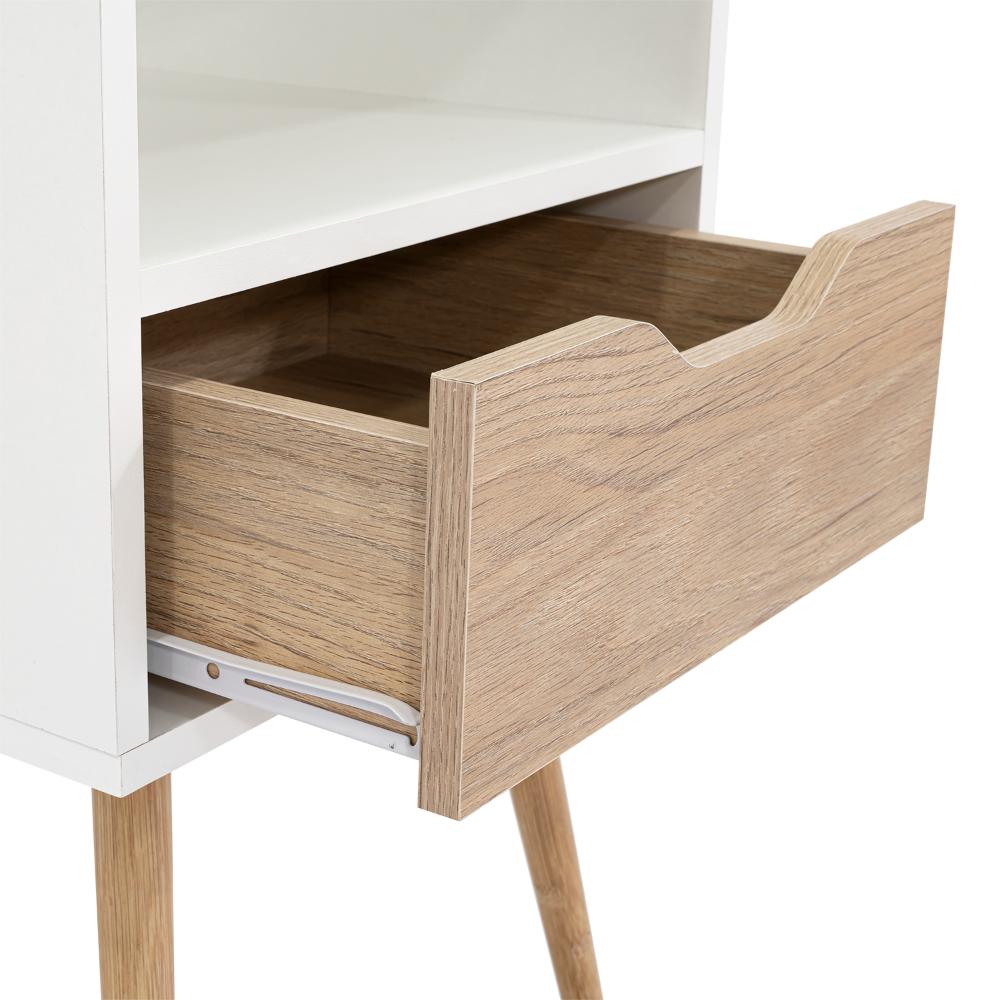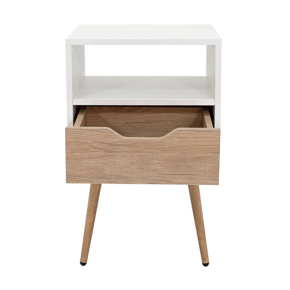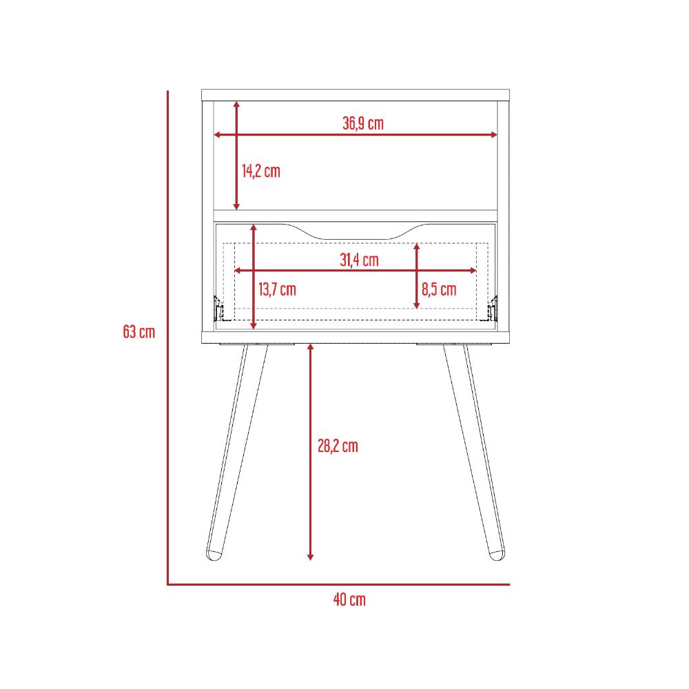 Mesa de Noche Alesio, Blanco y Beige, con Un Cajón