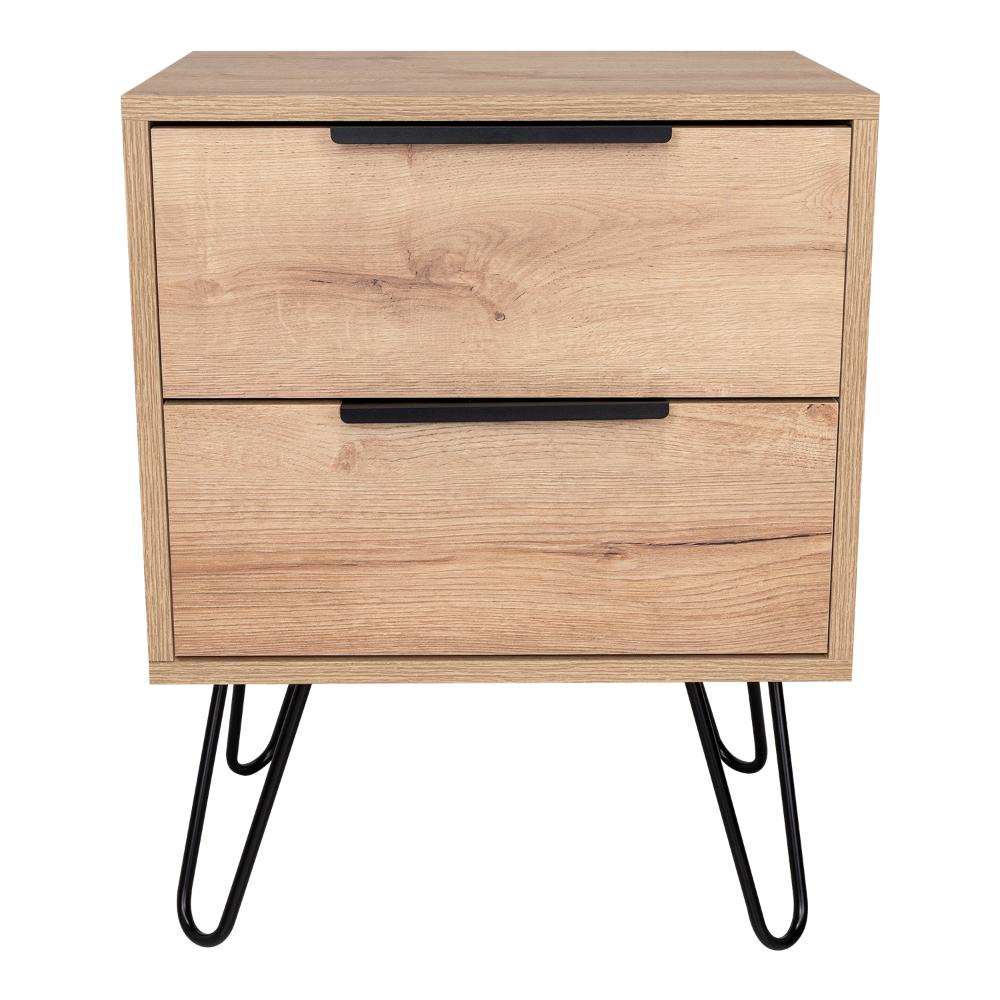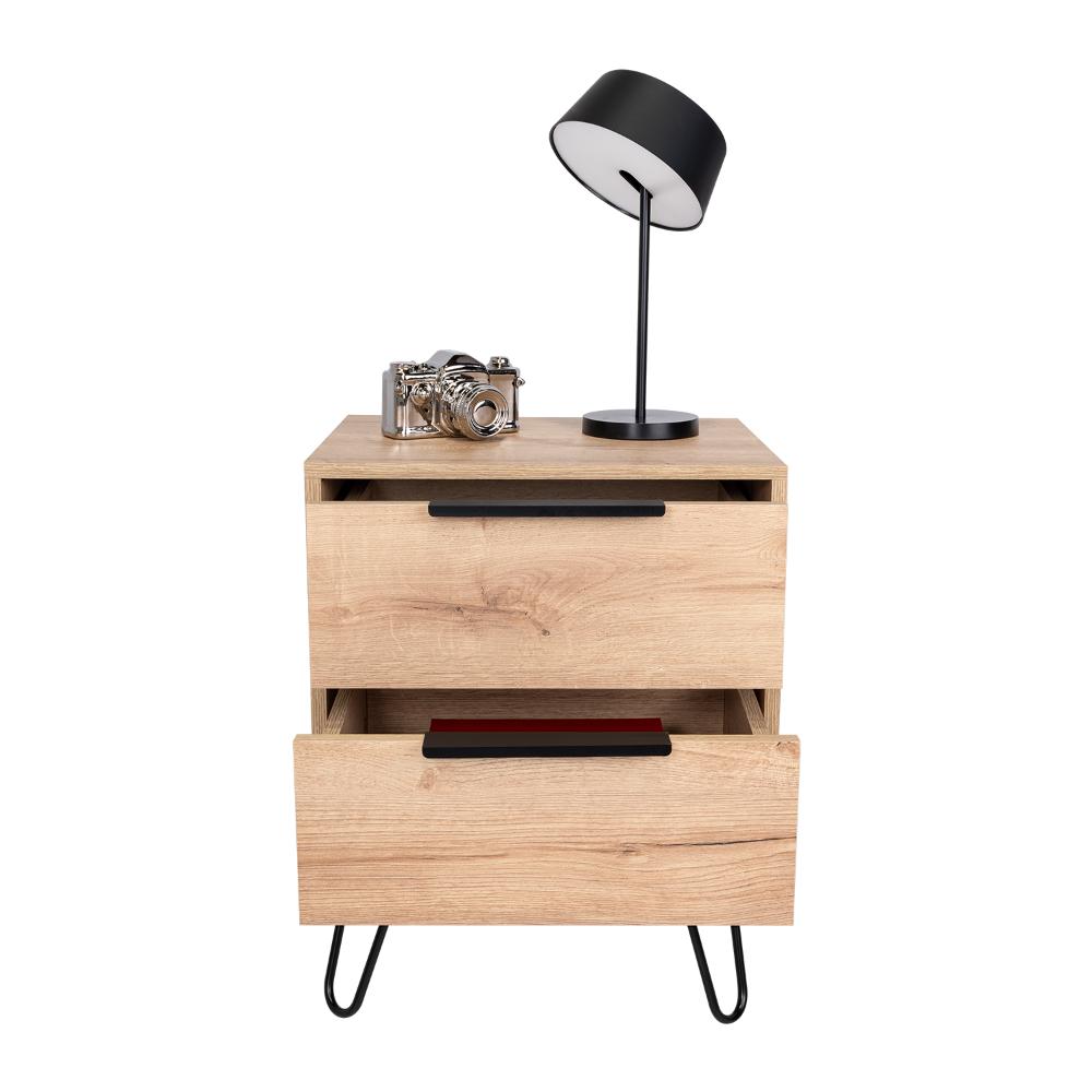 Mesa de Noche x2, 2 cajones deslizables y patas metálicas.