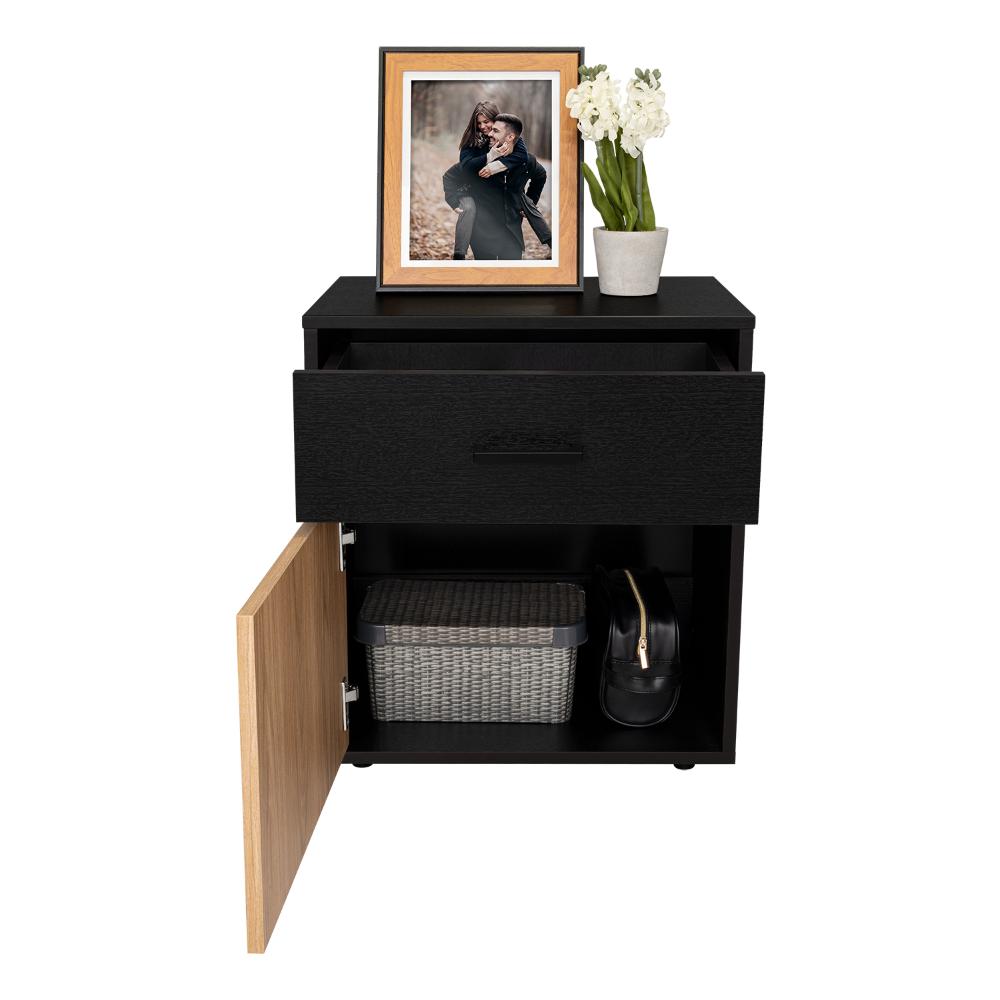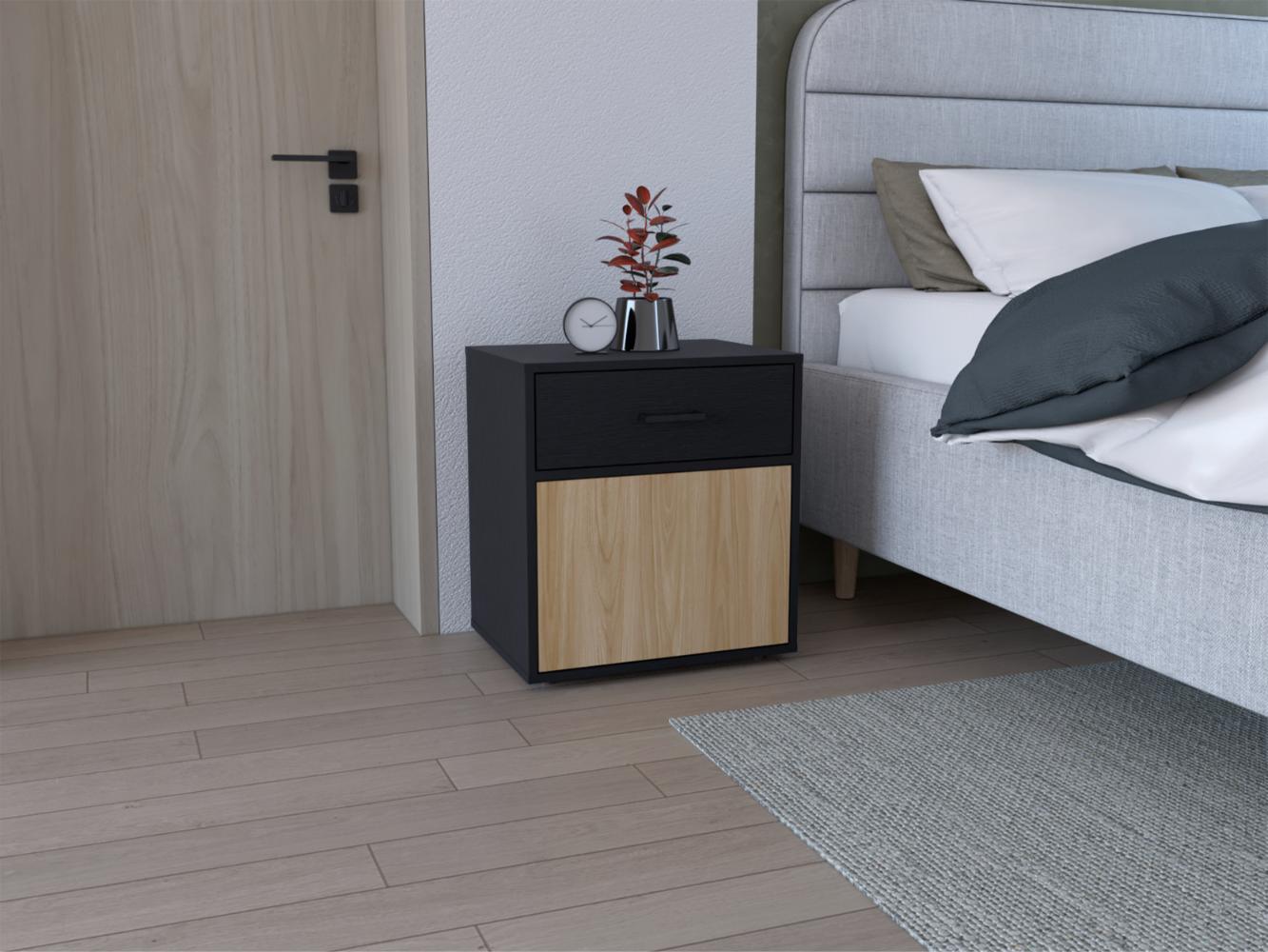 Mesa de Noche Grays, Wengue y Fresno Europeo, con una puerta y cajón