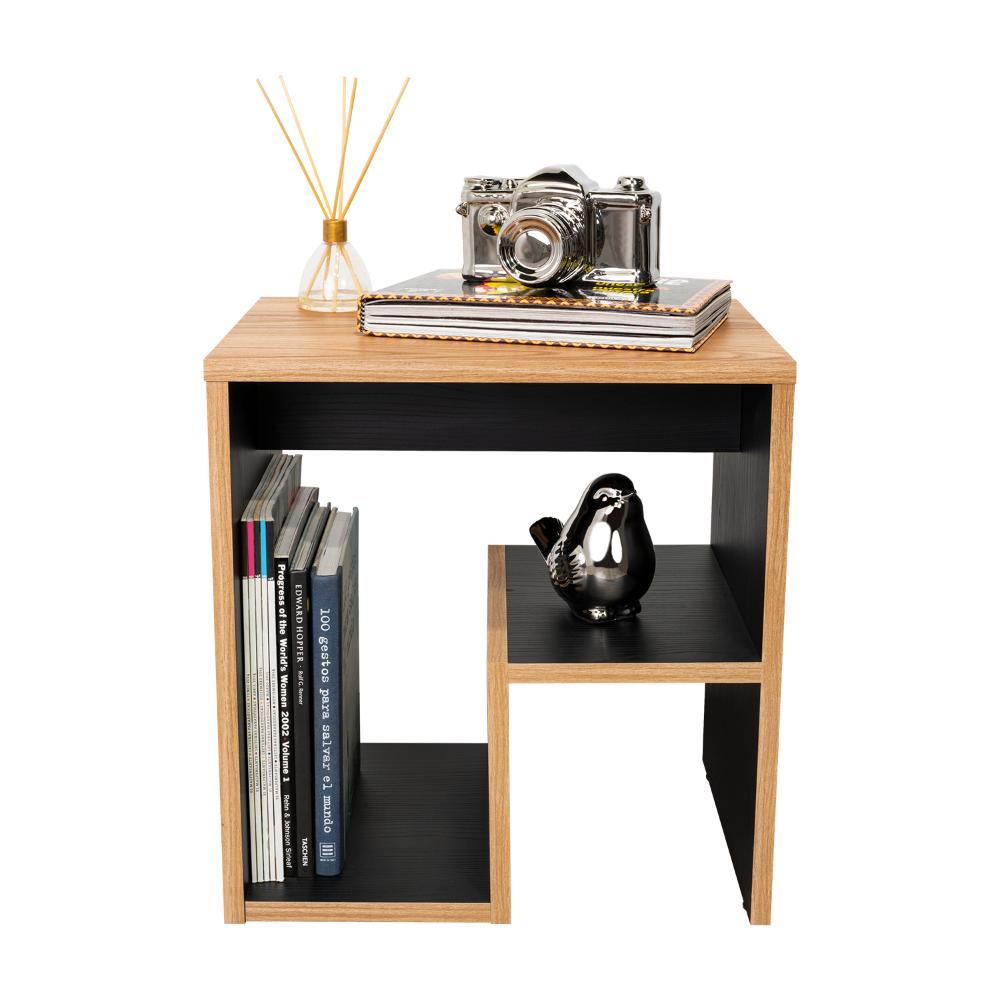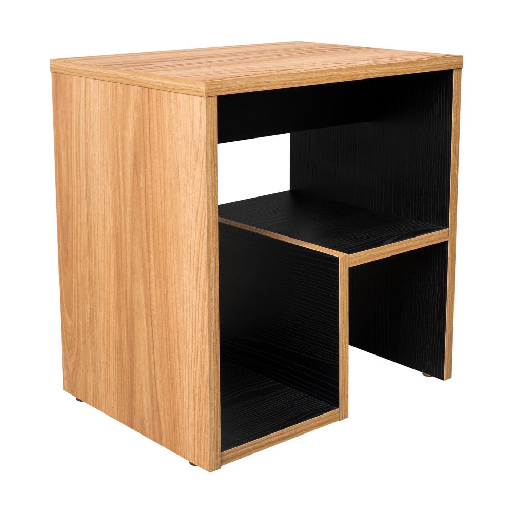 Mesa de Noche Niro, Fresno Europeo y Wengue, con diseño minimalista