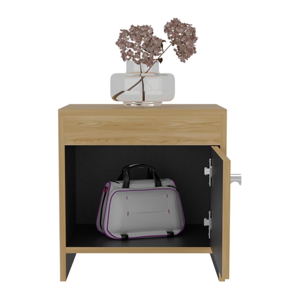 Mesa de Noche Tutto, Fresno Europeo y Wengue, con Cajón Para Guardar Objetos Ideal Para Espacios Reducidos