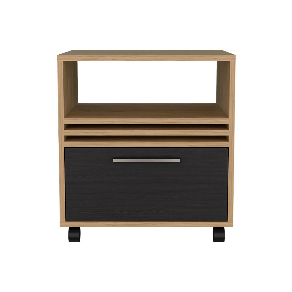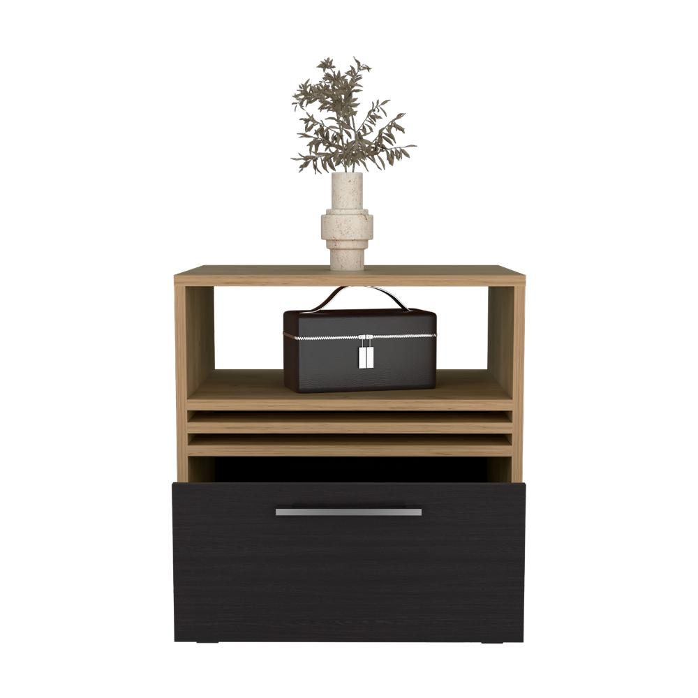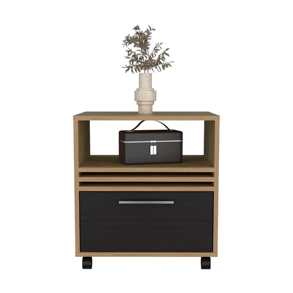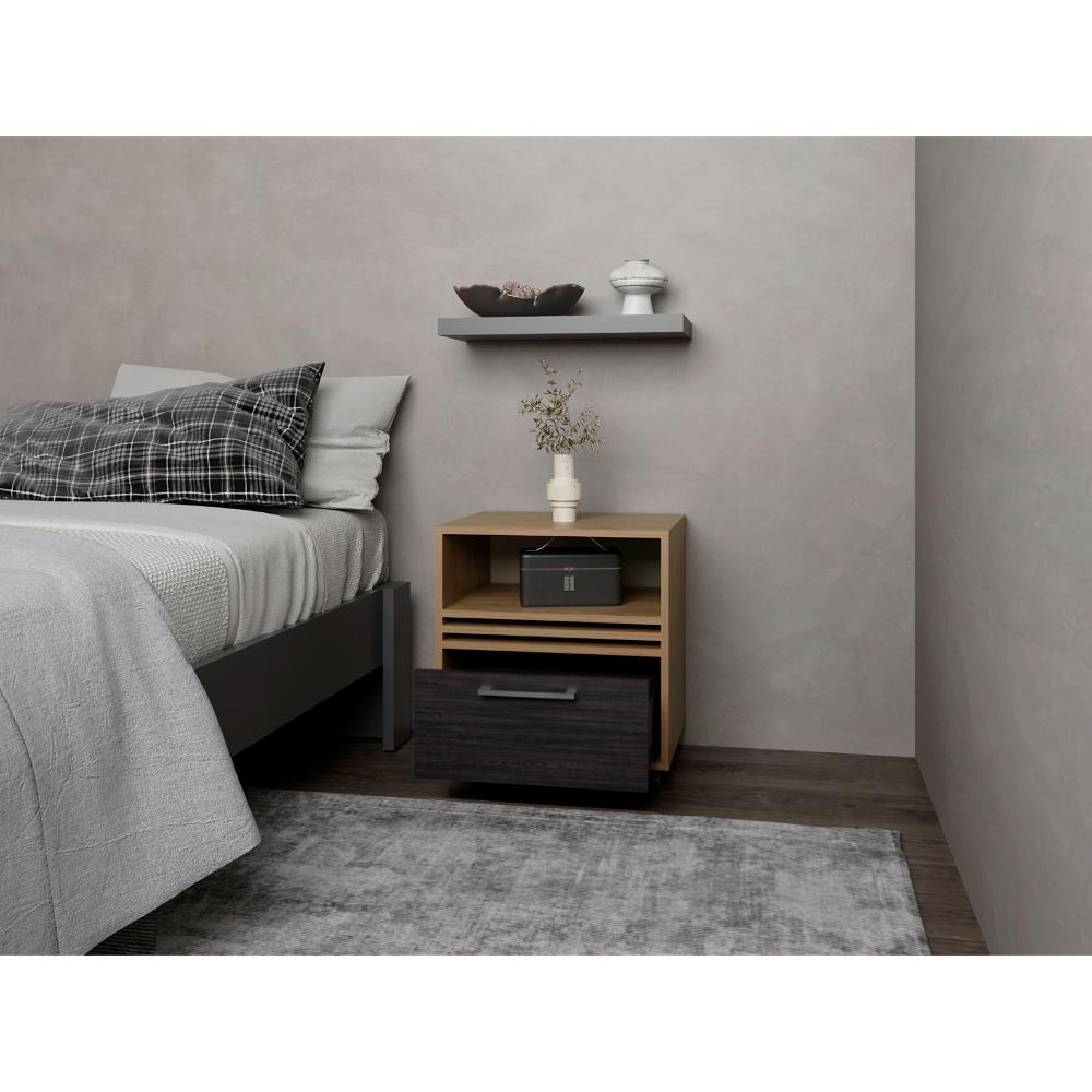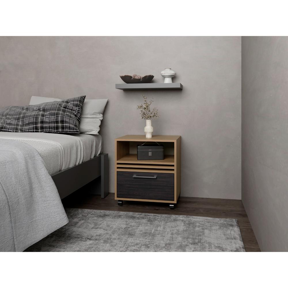 Mesa de Noche Vanez, Fresno Europeo y Wengue, con rodachinas ZF