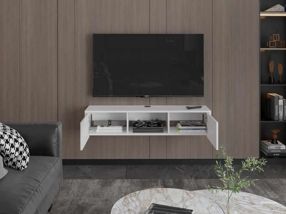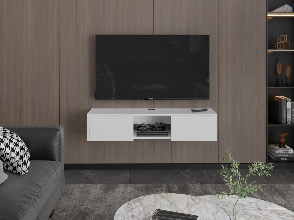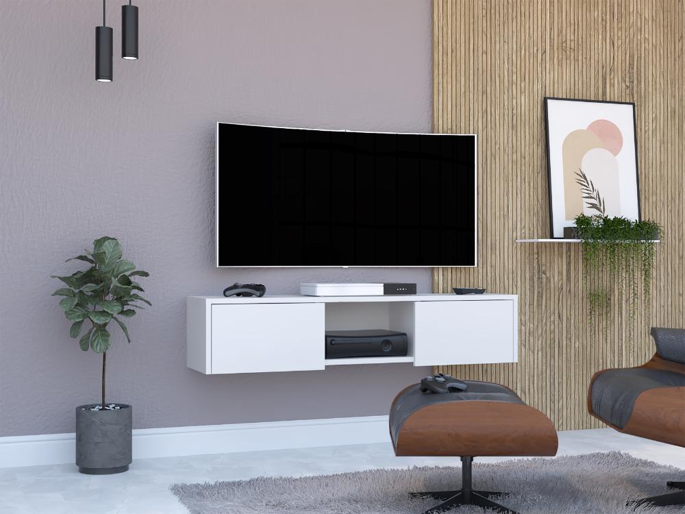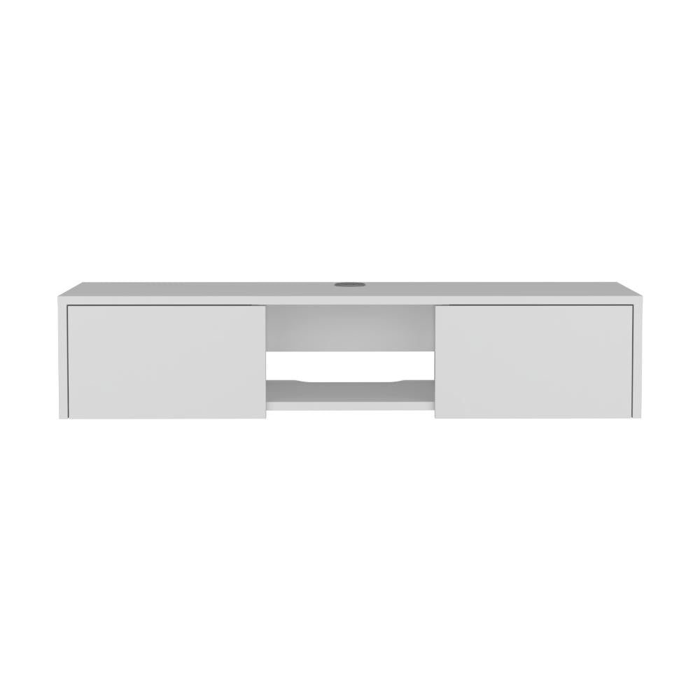 Mesa de TV Flotante, con superficie para objetos decorativos, equipos de audio y video, y dos puertas abatibles