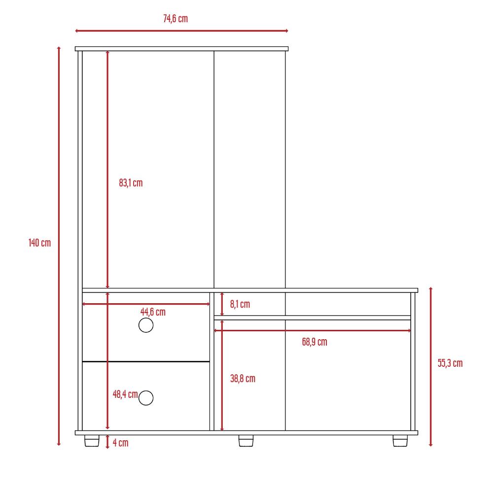 Elaborado en Madera aglomerada MDP, recubierta con láminas melamínicas de excelente calidad, en color Wengue.