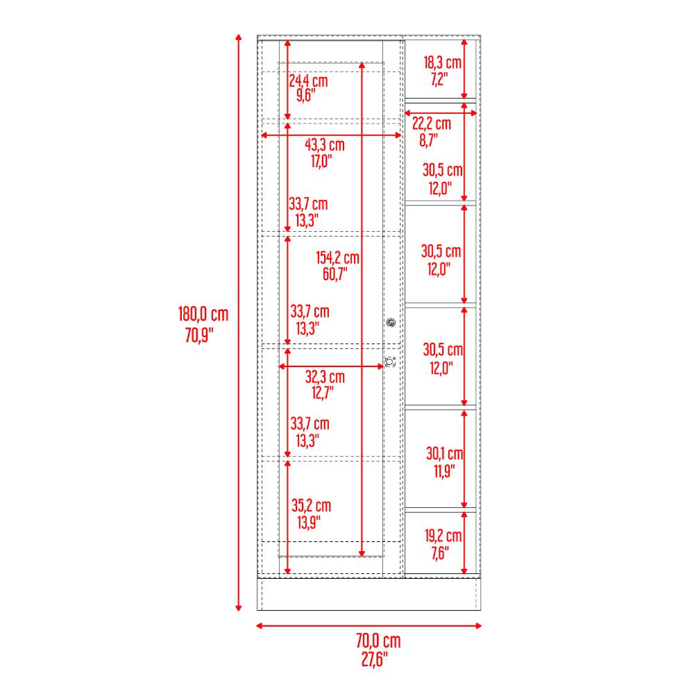 Mueble Multiusos, con 1 puerta con espejo, entrepaños organizadores, y espacio para organizar accesorios ropa, zapatos ente otros. Elaborado en Madera aglomerada MDP, recubierta con láminas melamínicas de excelente calidad, en color Caoba y Fresno Europeo.