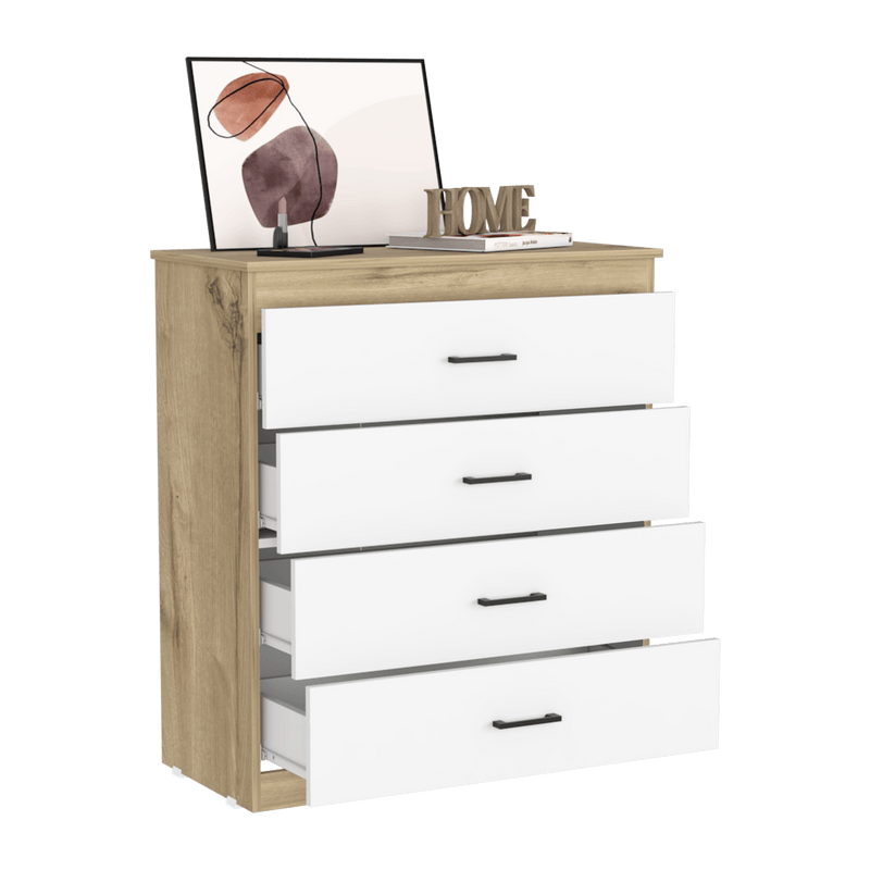 Organizador Douglas, Blanco y Café Claro, con Cuatro Cajones y Manijas Metalicas ZF