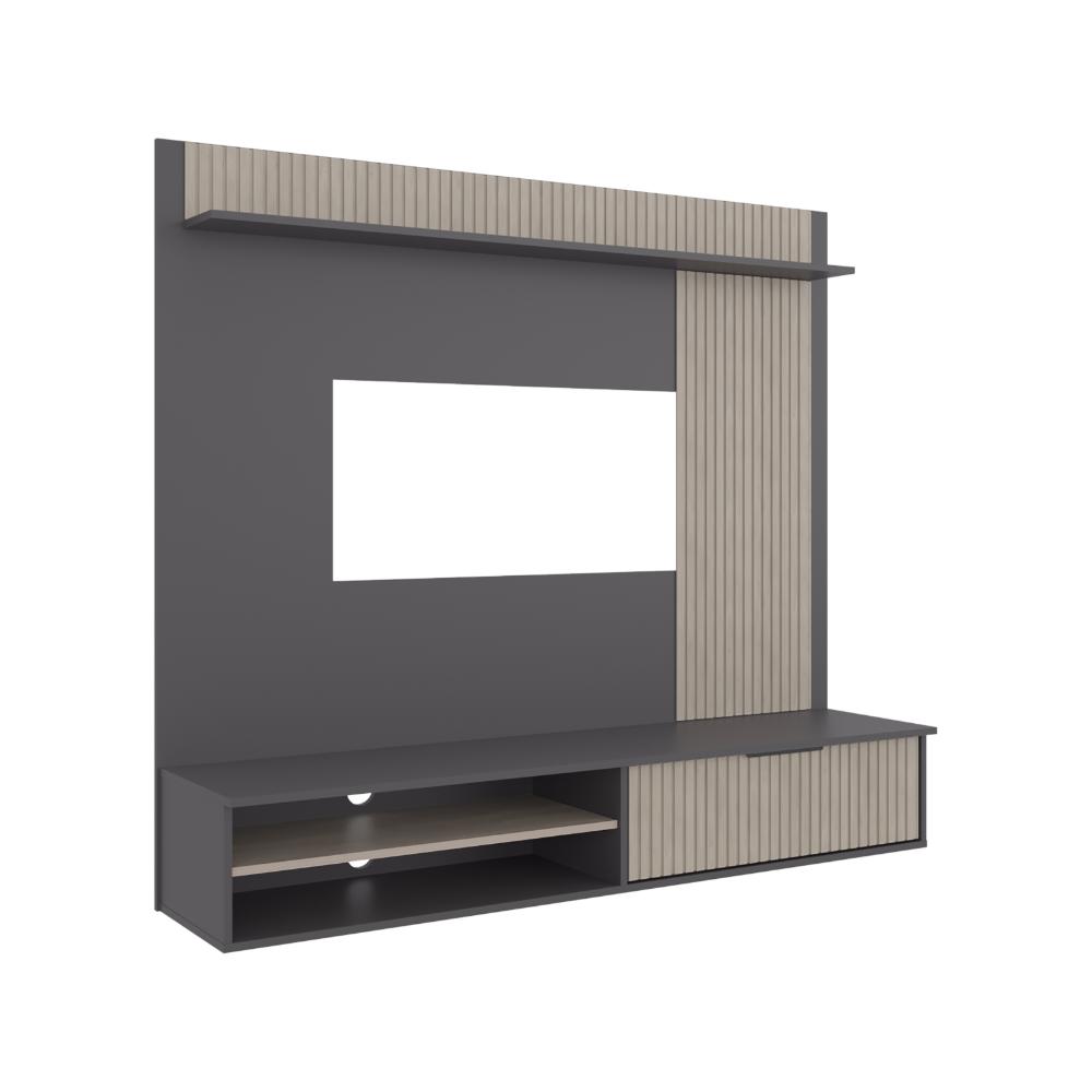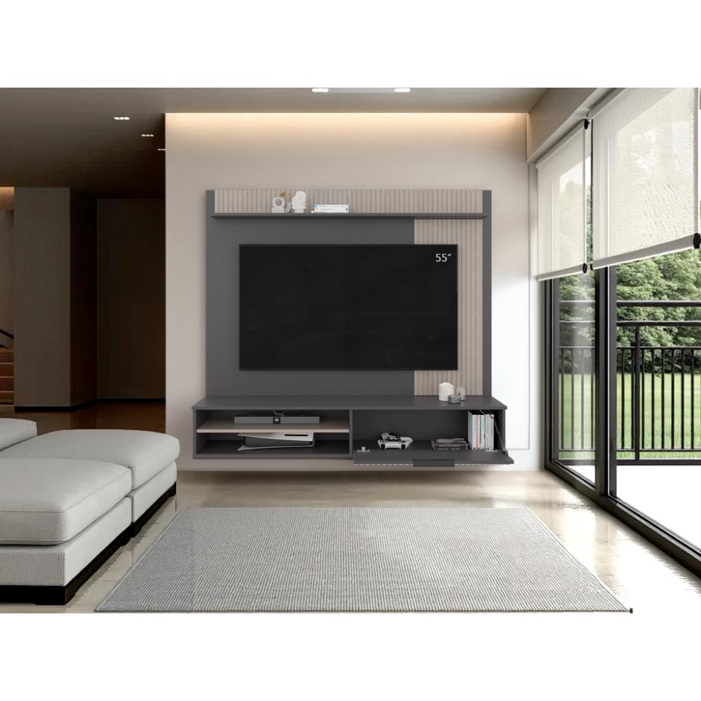 Panel de Tv Dover, Plata Oscuro y Bardolino, con espacio para tv desde 55 a 70"