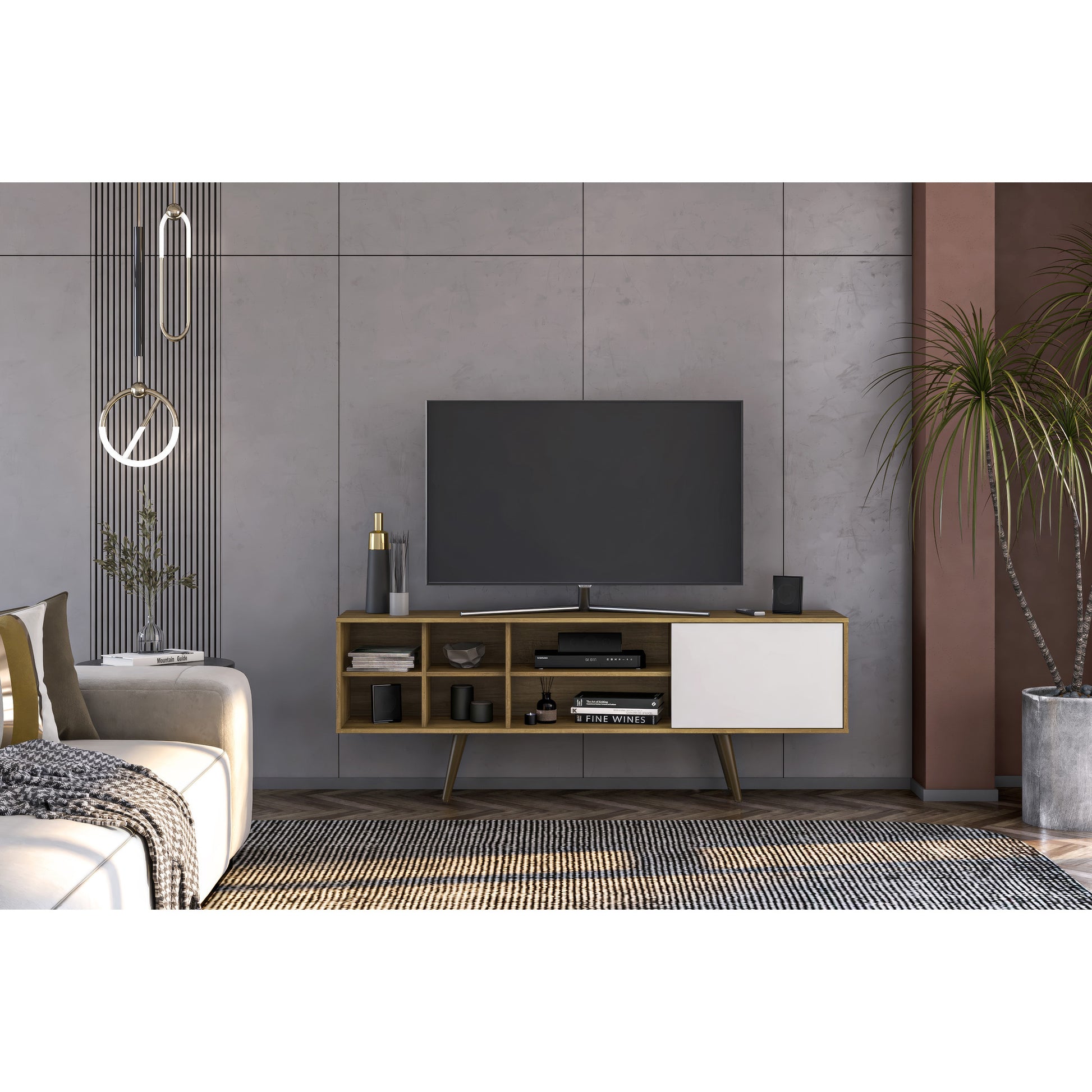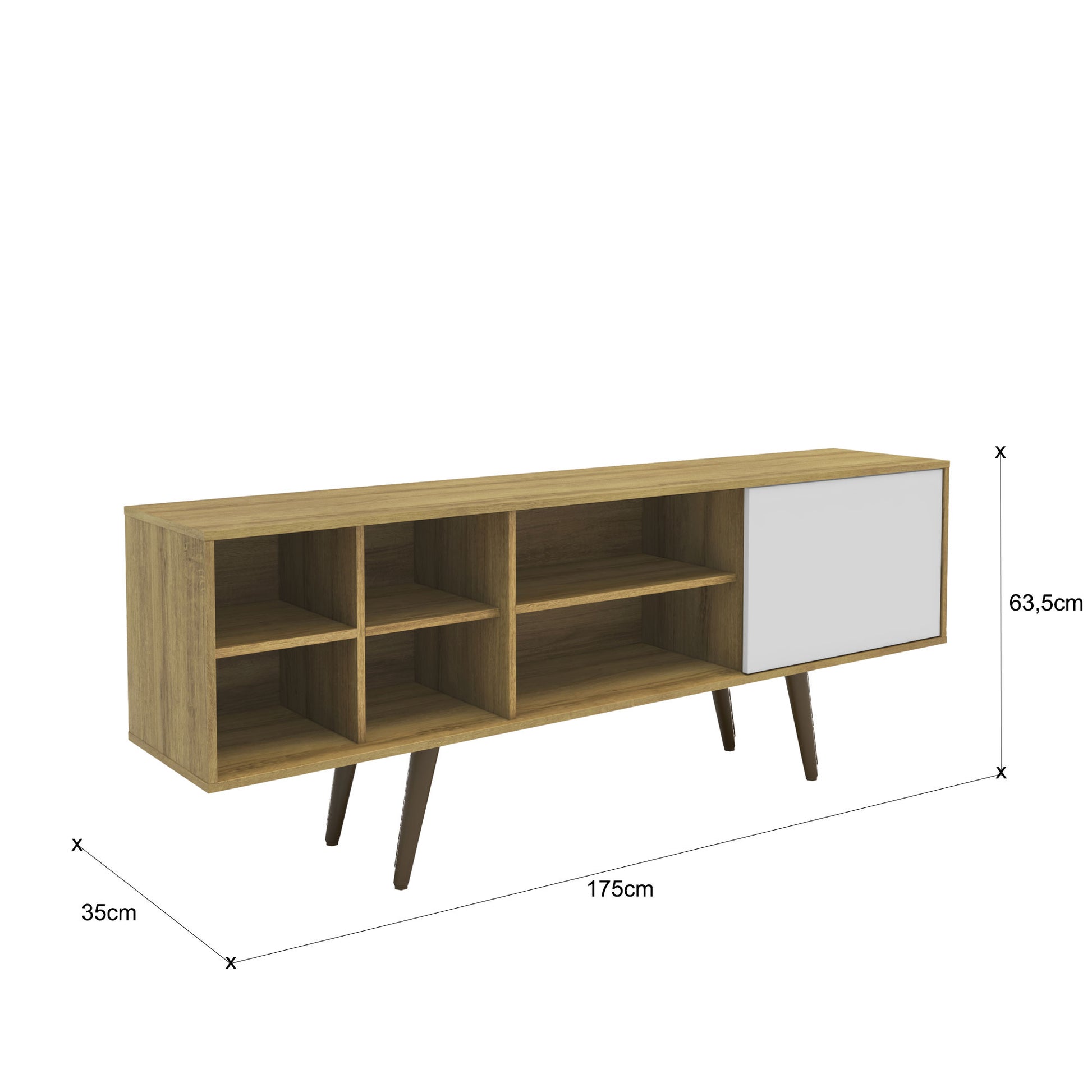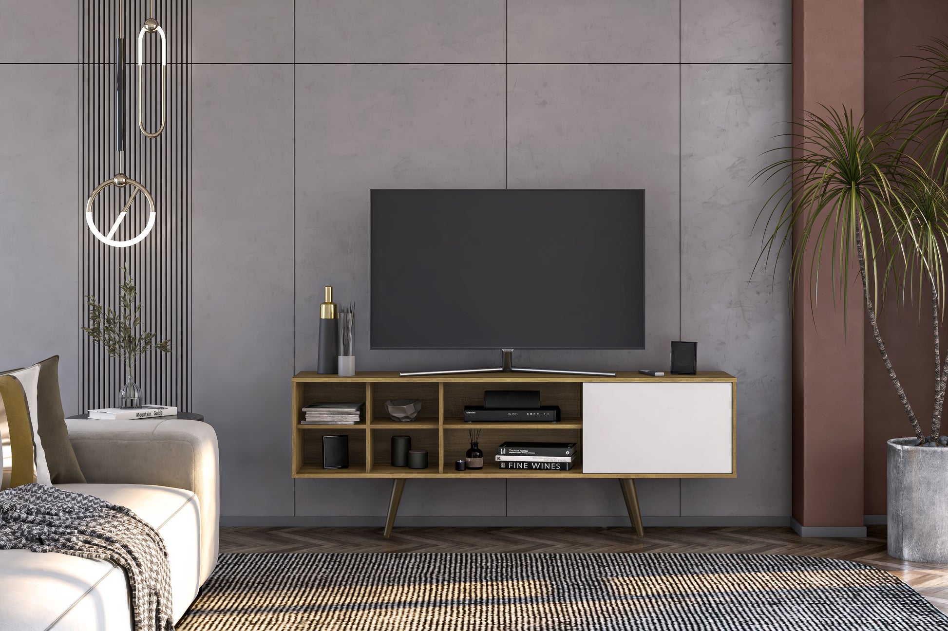 Rack Tv, Descubre el equilibrio perfecto entre funcionalidad y estilo con nuestro Rack de TV. Cuenta con un diseño moderno y elegante que se integra fácilmente en cualquier espacio, con variedad de entrepaños, fabricado con madera aglomerada MDP en color Blanco y Café claro