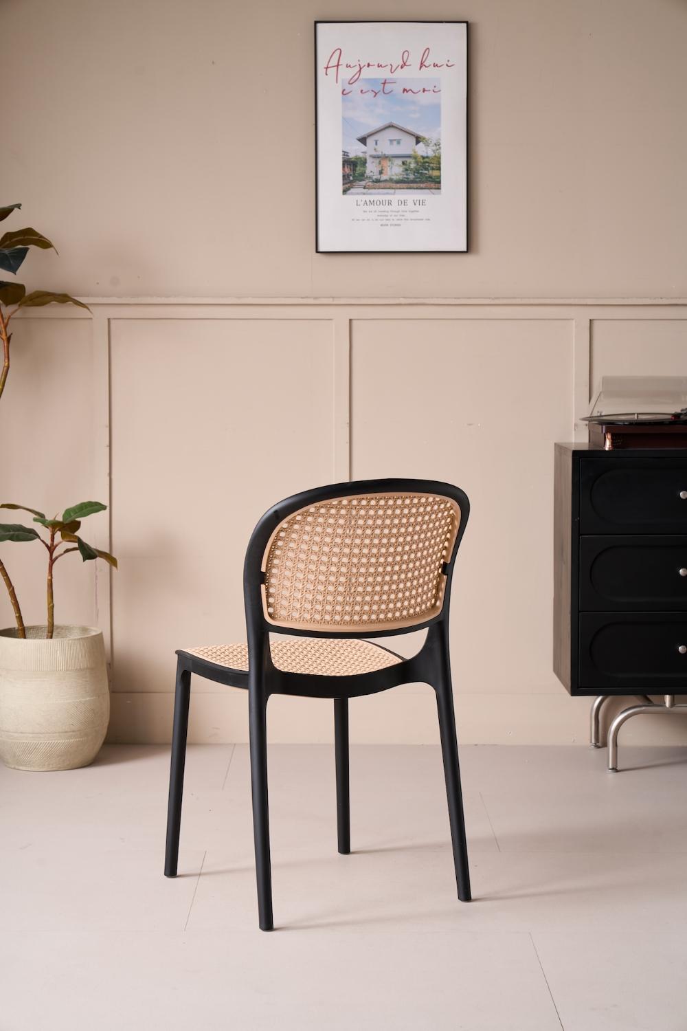 Silla Nest, Color Negro y Taupe, Con espaldar y asiento en rejilla